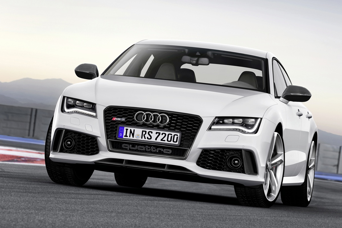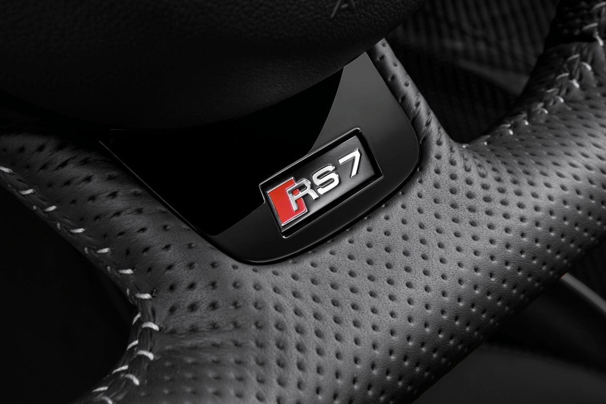 Detroitban bemutatkozott az Audi ötajtós szuperkupéja, az RS7. Tízféle külső fényezéssel kínálják, köztük a vadonatúj Nardo szürke és Daytona mattszürke színekben, melyeket matt alumínium és karbonszínű díszbetéteket tartalmazó csomagokkal lehet még egyedibbé varázsolni, megrendelésük esetén kerül az első légbeömlő nyílás aljára a képeken is látható quattro-felirat. A karbon csomag erőteljesebben formált diffúzort és első légterelőt is tartalmaz, a külső visszapillantó tükrök és a teljes egészében LED-es fényszórók is szénszálas műanyagot mintázó felülettel érkeznek.