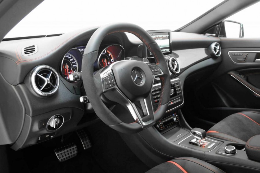 A csillagembléma helyére a Brabus óriási B-betűje került, piros keretet kapott a hűtőmaszk, piros karimát az új felniszett, s a LED-oldalvillogós tükörházakról sem maradt le egy-egy vékony piros betét. A Brabus tuningja azonban nem merül ki az optikai átalakításban, egy kiegészítő vezérlőelektronikával a motor teljesítményét is növelték, a 360 lóerőből 400 lett, a 450 newtonméternyi nyomatékból pedig 500. A teljesítménynövelt CLA 4,6 helyett már 4,2 másodperces 100 km/órára gyorsulásra képes, így aztán már igazi szupergépeket is leiskolázhat, a gyárilag 250 km/órás végsebességlimit pedig 270 km/óráig nyújtható, hogy a hosszabb német autópályákon se kelljen kiindexelni a CLA-val.