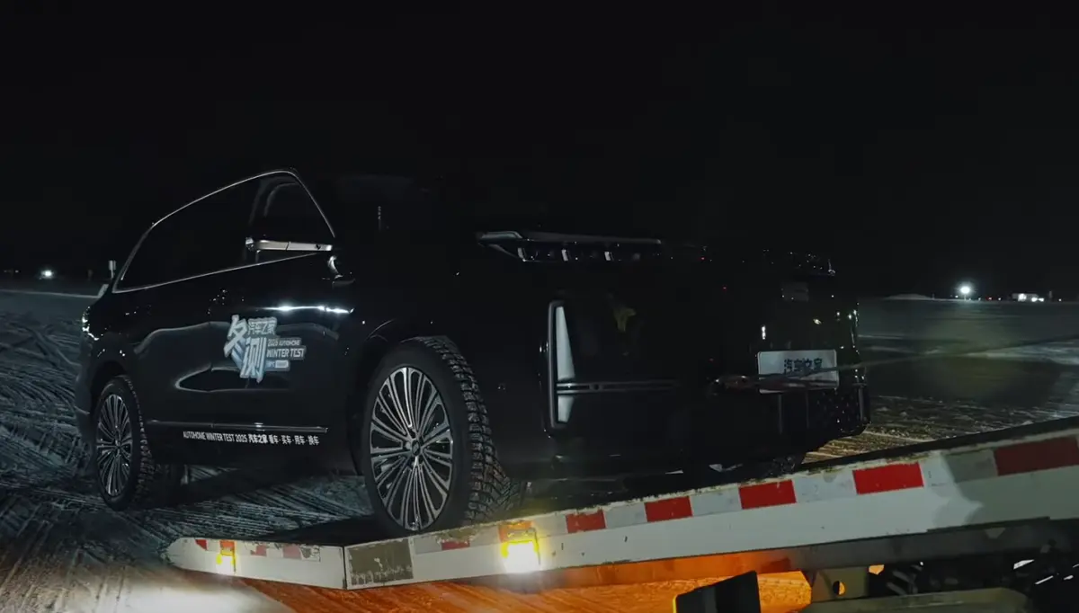 Szó szerint „ledöglésig” hajtották az autókat, majd traileren szállították vissza a töltőkhöz (fotó: CarNewsChina / YouTube)