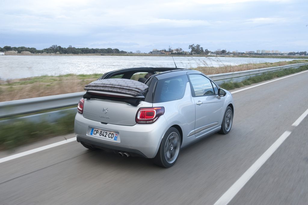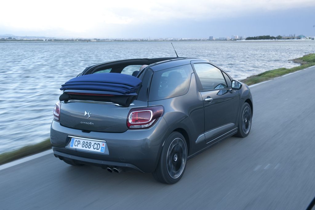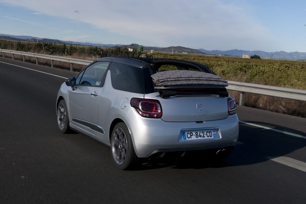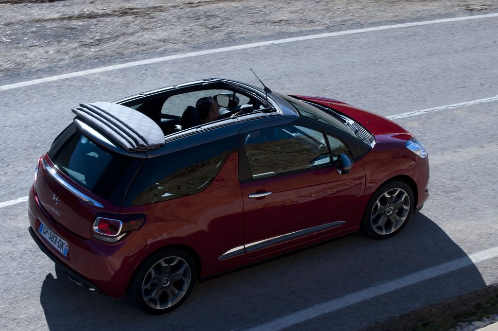 Cabrio modellként is cápauszonyos, kétféle fényezésű a Citroën DS3 Cabrio. Méretei is változatlanok, csomagtere a tető helyzetétől függetlenül 245 literes – kategóriája legnagyobbja