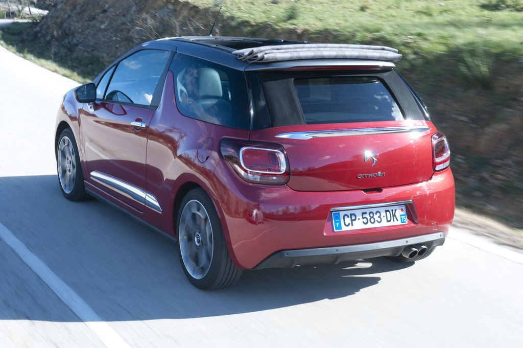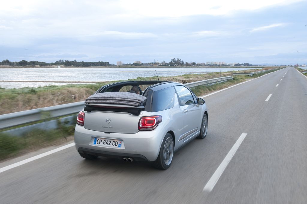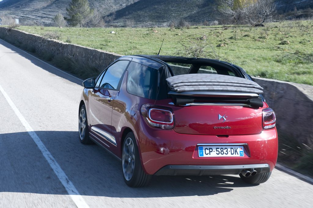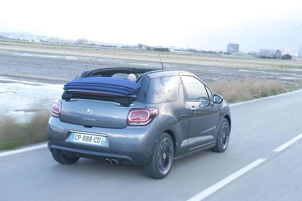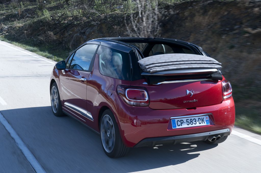 Cabrio modellként is cápauszonyos, kétféle fényezésű a Citroën DS3 Cabrio. Méretei is változatlanok, csomagtere a tető helyzetétől függetlenül 245 literes – kategóriája legnagyobbja