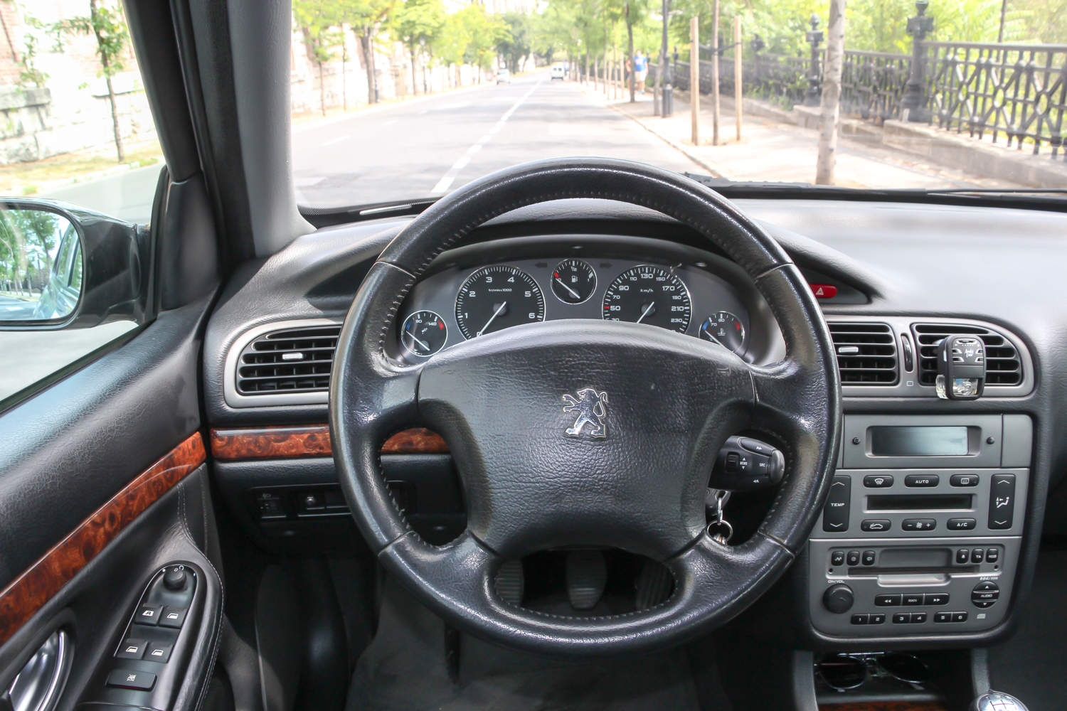 Hogy miért olyan kellemes még a pesti utakon is? Ennek a lágy hangolás az oka, meg a 195/65 R 15 méretű gumik, amiknél ma már egy kisautón is nagyobb van, pedig ezzel lehet parkolni, ez kényelmes, és ez a méret nem is annyira drága. De ma már sajnos egy babakocsin is nagyobb kerék van. És a legszebb, hogy a 406 kicsit sem néz ki sután ezekkel, hiszen ezekhez optimalizálva rajzolták meg anno. Mindemellett miért lehet vele tisztességen kanyarodni is? Annak meg az az oka, hogy jutott bele elég anyag meg alkatrész. Elöl az unásig ismert MacPherson rendszerű futóművet kapta, mint az utcán rohangáló kocsik 90 százaléka, de mellé egy torziós stabilizátorrudat is. Hátulra a franciák nagy kedvence, a hosszanti csatolt lengőkar helyett ebbe rendes, teljesen független, többlengőkaros felfüggesztés jutott. Mindezekkel együtt a 406 hangolása igen kellemes, benne a legjobb a nyugodt utazás, pedig a 136 lóerős 2,0 literes a mai lefojtott szívómotorokhoz képest egész kellemes karakter. Hiába, az Euro 3 idejéből származó 190 Nm még ma is elég egy jó autózáshoz. A váltó hosszú úton jár, maga a kar is elég hosszú, és bár egész pontos, nem nagy élmény hozzányúlni – mint a korabeli Peugeot-kban általában. A fokozatok viszont elég rövidek, 130-nál 3600-at forog a motor, ahonnan ha kell, még bőven gyorsít, de ebben a kocsiban én inkább egy kellemes 110-et lőnék be autópályán, ahol csak 3000-et mutat a fordulatszámmérő, ezzel kevesebbet fogyaszt, csendesebb is, sietni meg minek… A sebesség tartása a kétliteres 406-ban lábmunkát igényel, mert az egyéb elektromos csecsebecsék mellé tempomat nem jutott bele. Ezzel a felszereltséggel nem volt rendelhető, a nagyobb 2.2-eshez és a 3,0 literes V6-oshoz viszont járt – legalábbis az archív árlista szerint, a magyar piacon 2003-ban.