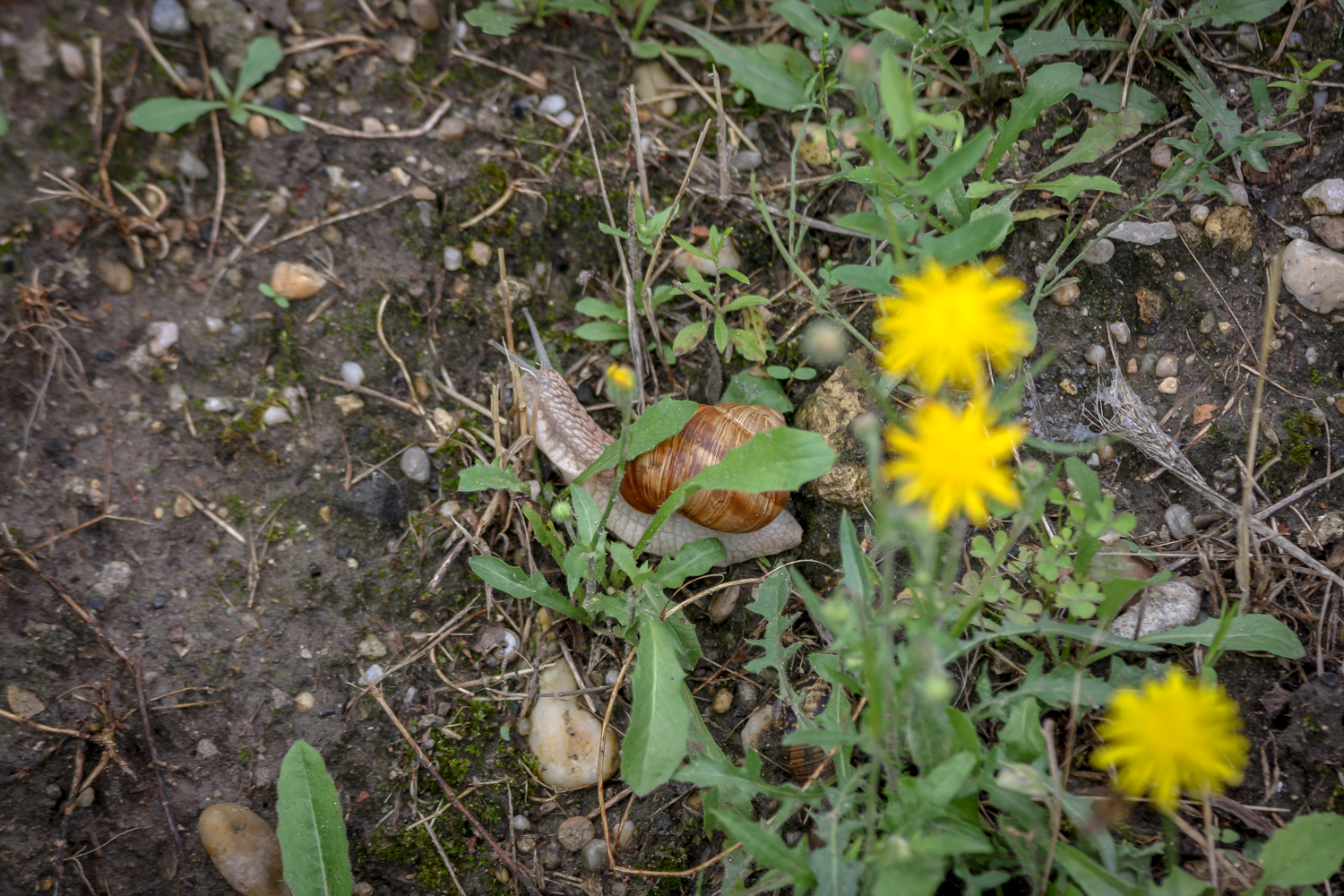 Meghallgattuk a híreket. A csiga arra felkapta a fejét, hogy hétvégén szárazabb idő jön, majd amikor megérkeztünk a parkolóba, jobbnak látta leszállni. Segítettem neki, a kocsiktól minél messzebb vittem, aztán két két méterrel arrébb ráléptem egy másikra, egy kisebbre, ropogott a háza a cipőtalp alatt, jaj.