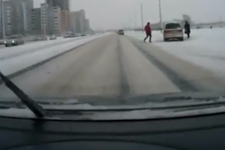 Elnézést a kifejezésért, de erre nincs más szó: igazi súlyos gyökérség, amit a videón látható autó vezetője csinál. Mikor meglátja, hogy előtte jó 50 méterrel egy gyalogos kel át a havas úton, ahelyett, hogy leszállna a gázpedálról, inkább rátapos, akárcsak a dudára két kézzel, sőt, mikor mellé ér, még rá is húzza kicsit a kormányt az előtte áthaladó járókelőre. Már az első két lépése is hallatlanul pofátlan volt, de a harmadikért megkapja méltó büntetését: a havas úton elrántott kormánytól az autó sodródni kezd, agyatlan hősünk pedig nem bírja visszanyerni az autó stabilitását, és azonnal meglakol gaz tettéért. Bárcsak mindig ilyen gyorsan működne az igazságszolgáltatás!