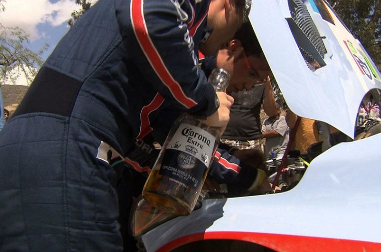 A pluszpontot jelentő utolsó futam után szponzori ajándékként kapott magnum palack Corona sörön kívül semmi nem volt náluk amit a hiányzó hűtőközeg pótlására felhasználhattak volna. Lábon kellett visszavinniük az autót, így hamar döntöttek, és öntöttek. Nem, nem itták meg a sört, hanem beletöltötték a hűtőbe. Az i20 még 25 kilométert tett meg besörözve, és nem lehetett rossz a koktél, mert nagyobb gond nélkül megúszták a piás kalandot. Hogy az árpamaláta, vagy a rizs és a komló teszi, nem tudhatjuk, de a Corona lehet, hogy megfelel a Hyundai hűtőfolyadékra vonatkozó gyári előírásainak. Ezt már a sörös cég reklámosainak kell utólag kitalálnia. Biztos lecsapnak a lehetőségre.