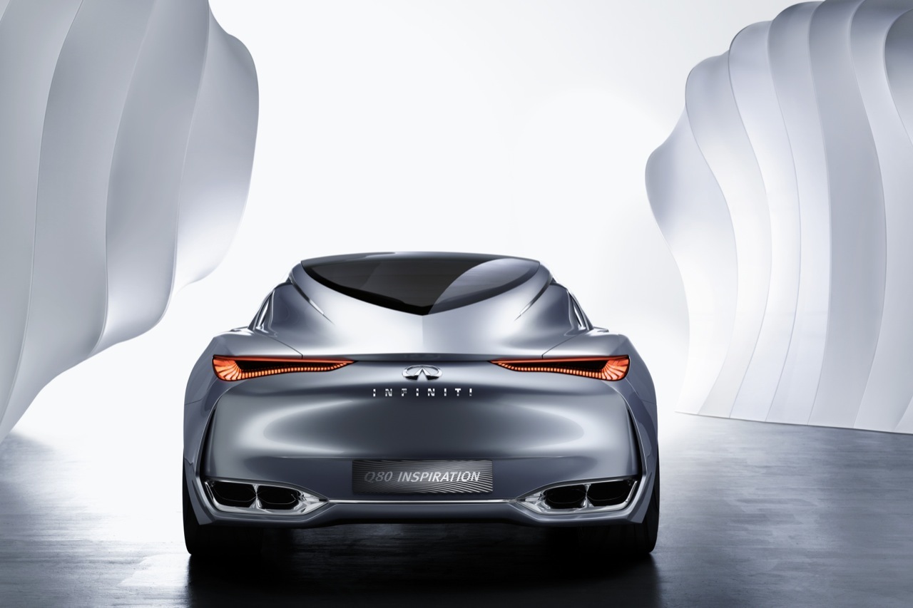Igazi luxuslimuzinnal, nemcsak a Mercedes-Benz S, Audi A8 és a BMW 7-es, hanem a Lexus LS ellenében sem rendelkezik – egyelőre – az Infiniti, ám most a Párizsi Autószalonon már megmutatta, hogy miként képzelné el csúcsmodelljét. Futurisztikusan, ugyanis a Q80 Inspiration középső tetőoszlop nélküli, szemben nyíló ajtós karosszériájával, tanulmányautósan négy független üléses, üvegtetővel fedett utasterével minden, csak nem konzervatív limuzin. Hosszúsága 5,06, míg magassága mindössze 1,34 méter.