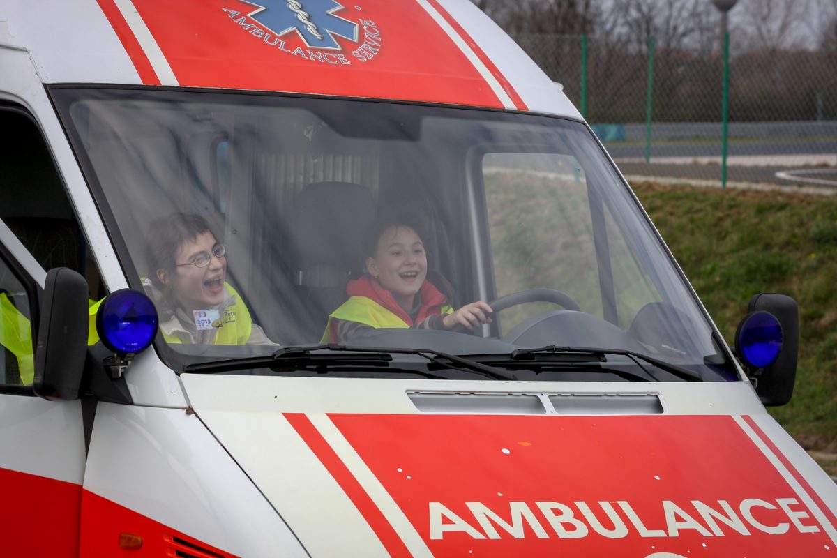 A gyerekek biztonságos közlekedésre nevelése jegyében 30 gyereket, köztük óvodásokat is vendégül látott a társaság. Érkeztek gyerekek a Pető Intézetből is. Ők a mini közlekedési parkban kisautózhattak, és bemutatót tartott számukra a rendőrség, valamint a mentőszolgálat is.