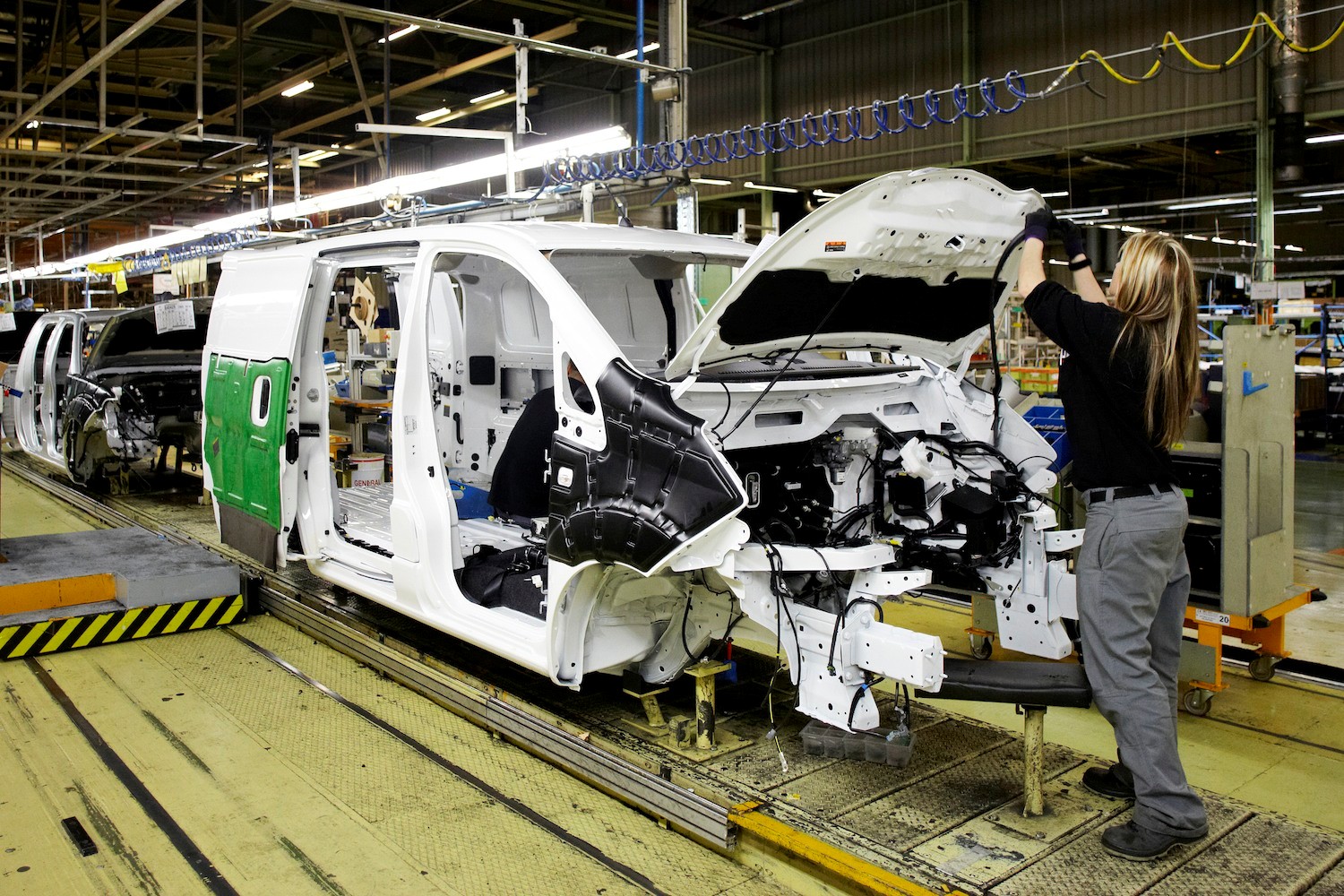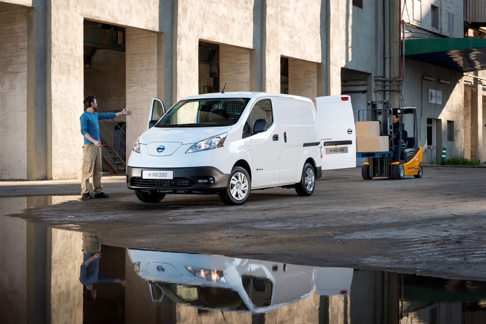 Az első kiszállítások júniusban indulhatnak, a termelés felfutása folyamatos, és Japánba is innen fognak eljutni a jobbkormányos e-NV200 modellek. A kisteher nem csak a gyártóhelyén osztozik a Leaffel, de annak hajtásláncát is megkapta. A robbanómotoros változat tárolókapacitását 170 km-re elengedő környezetbarát használattal tudták kombinálni, legalábbis a szabvány mérési ciklus szerint. A gyakorlatban elsősorban városi használtra lehet alkalmas, ott viszont kiváló, mind személy-, mind áruszállítására és mindezt nulla helyi emisszióval. Villanymotorja 80 kW (109 lóerő) teljesítményű, teljes egészében össze van építve az akkutöltő és az inverter egységgel.