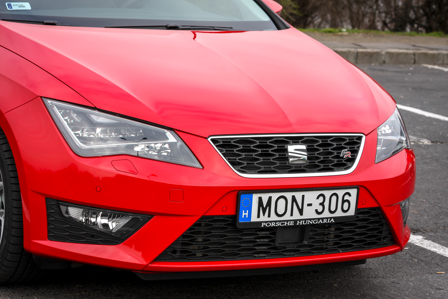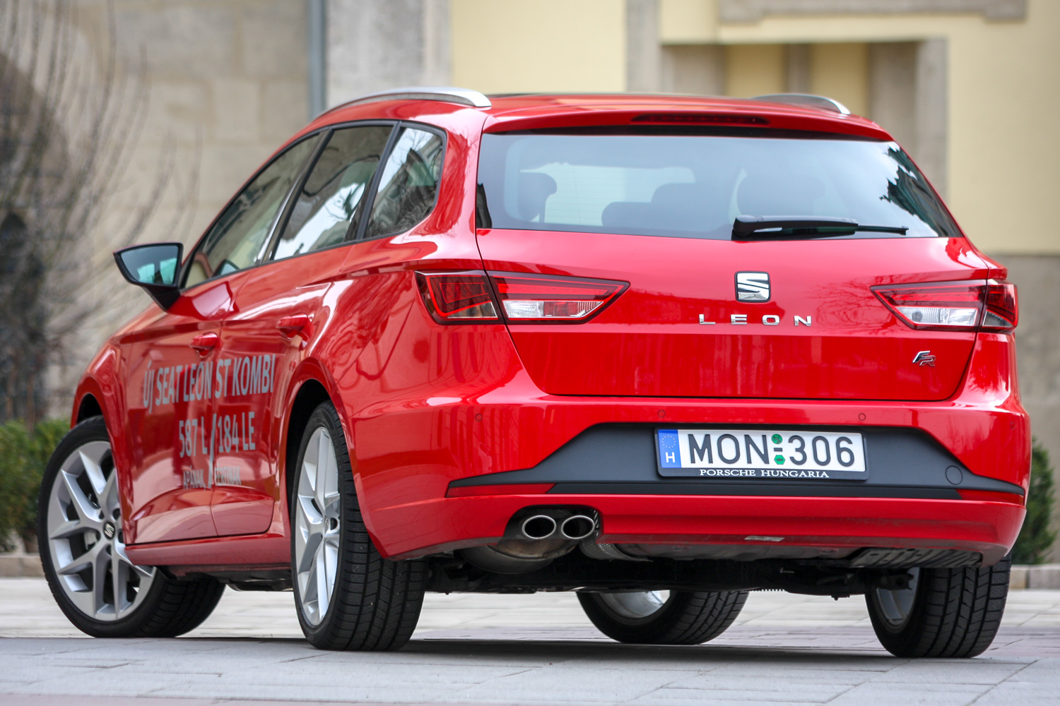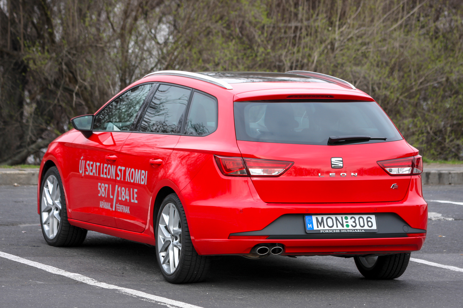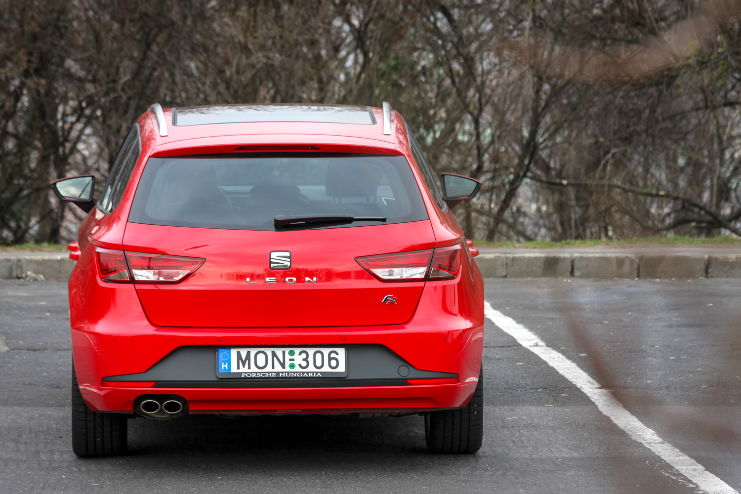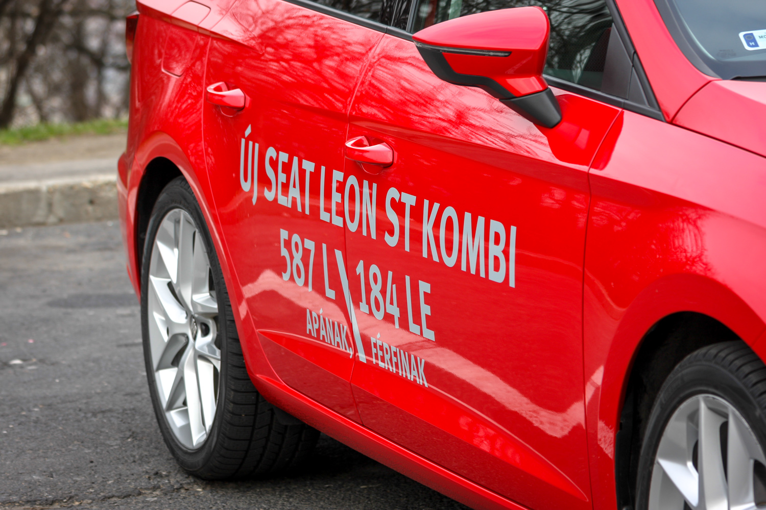Szinte ugyanaz a SEAT első kompakt kombija, mint a Golf Variant és az Octavia Combi, de a Leon ST tán szebb, mutatósabb náluk és a konkurenciánál is – pláne ebben a piros színben, FR-csomagosan, 17 colos kerekekkel és LED-es lámpával