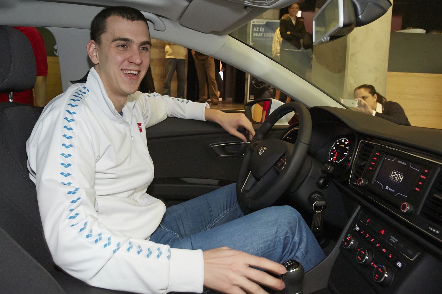 A sajtótájékoztatón tiszteletét tette a többszörös olimpiai érmes, világ- és Európa-, no meg magyar bajnok úszó Cseh László is, akit évek óta támogat a SEAT. Laci jelenleg az augusztus végi berlini Eb-re készül – itthon. Naponta kétszer-kétszer 30-30 kilométert autózik, s teszi ezt egy ötajtós, fehér, 105 lóerős 1.2 TSI benzinmotoros Leonnal, DSG automata váltóssal. Mint elmondta, 2003 óta SEAT-ozik, a benzines Leonok hadát volt, hogy dízel Altea törte meg. Az autókat szereti, néha majdnem eggyé válik a kocsival, zenét hallgat, s úgy repül az idő. Automatapárti, mert kényelmes, nem kell kuplungolni, és hát a DSG gyorsabb is, mint ő – tette hozzá nevetve.