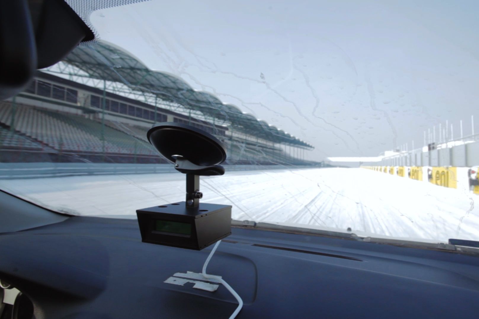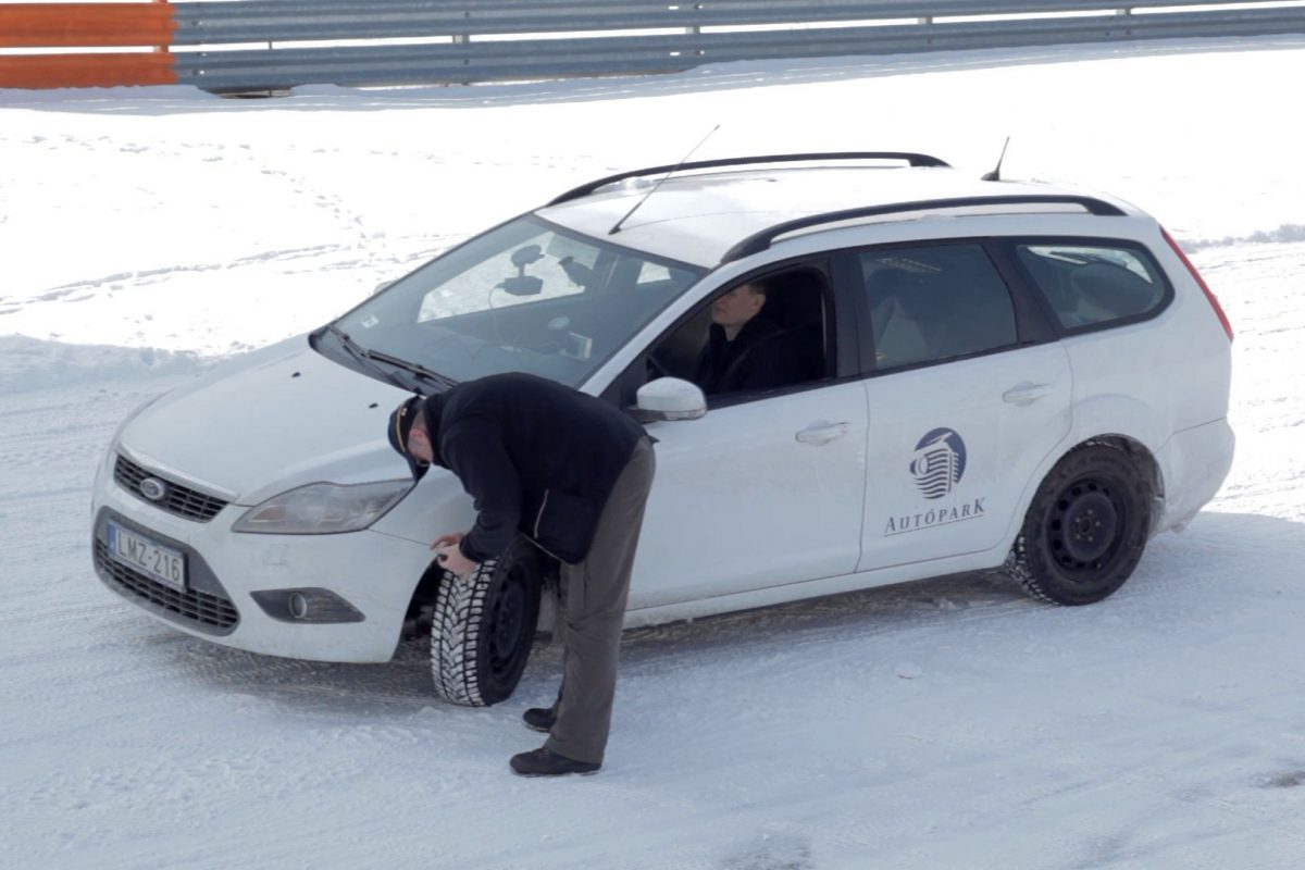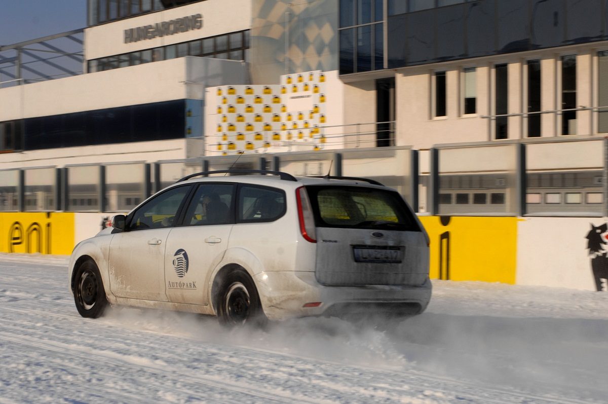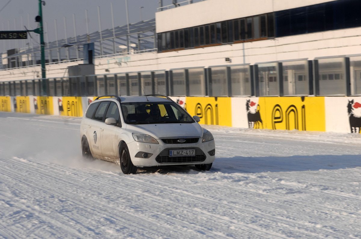 40 km/h óra feletti tempónál nyári gumival nem voltunk képesek megállni 60 méteren belül a havas-jeges utat mintázó műgyantán