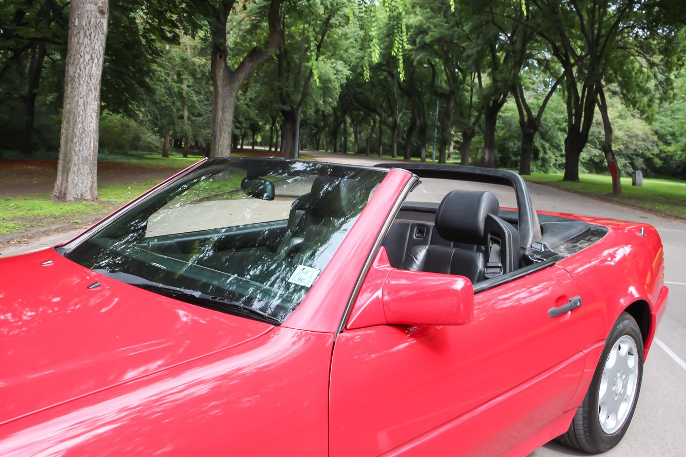 Térjünk vissza Magyarországra. Milyen ez a piros SL? Elsőre csak egy kilencvenes évekbeli stuttgarti kabriónak látszik, pedig nem csak nyitott, hanem sportos is, hátsó szükségülései ellenére is roadster. Nem hat forradalminak, mint elődei, például a Pagoda, de mindnél jobb autó, és innovatív funkcióival durván megelőzte a korát. Láttam már több ilyen SL-t, de nem utaztam bennük, ettől függetlenül, mivel egy ilyen korú Mercedesben töltöttem a kamaszkorom legfogékonyabb éveit, abszolút otthonos érzés volt belehuppanni. A fejemben róla élő kép felülírásához újrakezdtem az ismerkedést a cég egykori sportos csúcsmodelljével. Bár nem annyira magától értetődő, de ez a kvázi kockaautó a maga laposságával és óriási sík felületeivel nagyon áramvonalas.