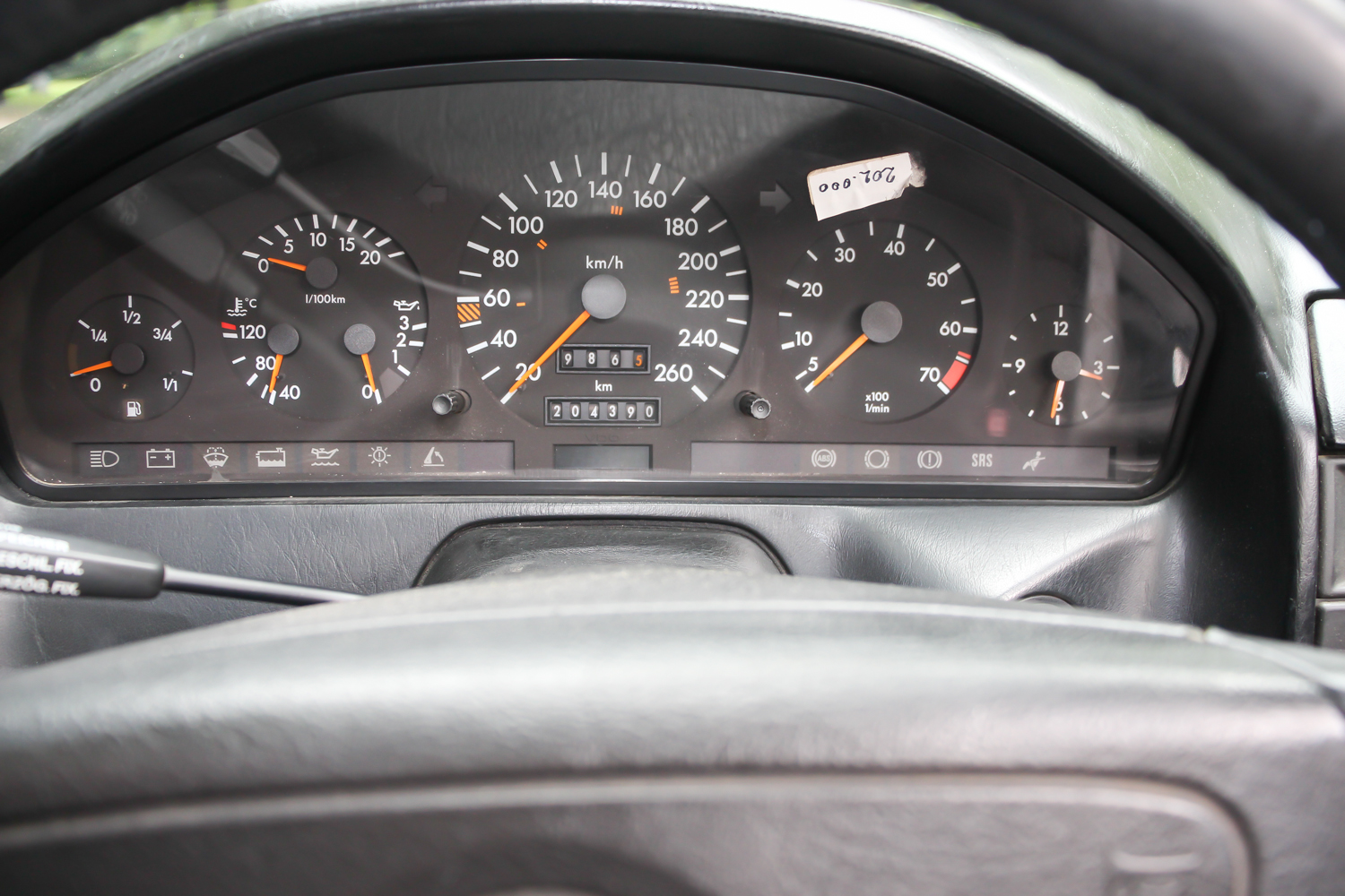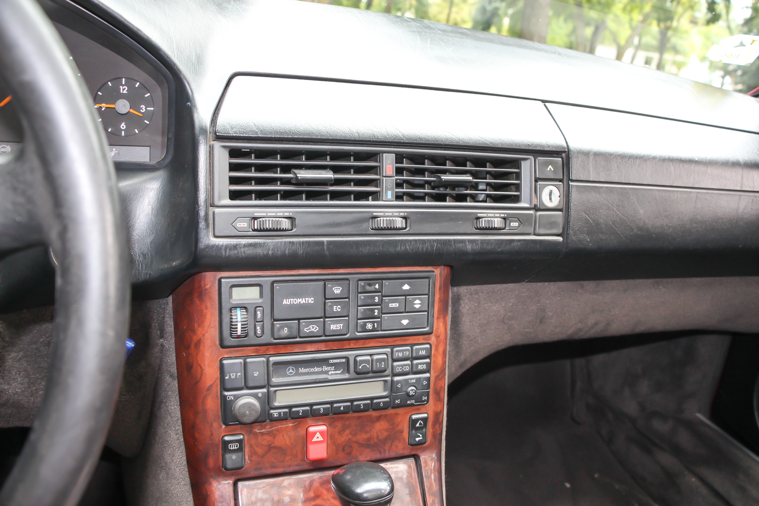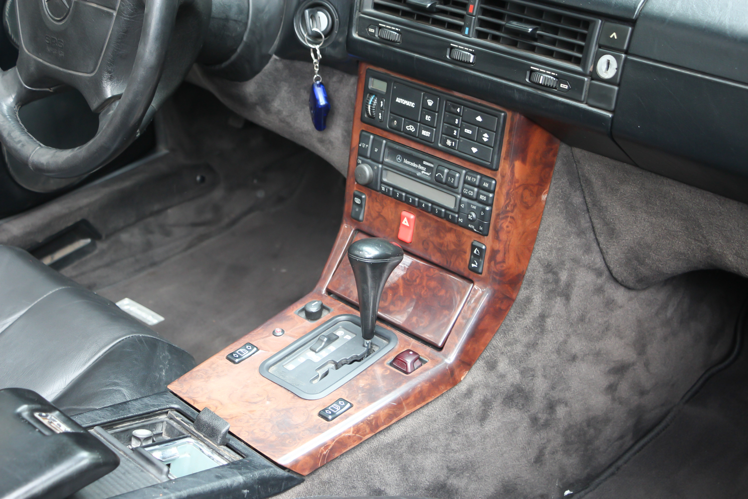 Az alsó burkolatok és a motortérben tervezetten mozgó levegő annyit számít, hogy keménytetővel 0,32 az alaktényezője, de nyitott tetővel és felhúzott ablakokkal is csak 0,4. Mindez egy akkora dögnagy autóban, ami 5 centiméterrel hosszabb a 190-esnél, de tengelytávja csak 2515 milliméter. Ettől lesz annyira hangsúlyos a hátsó túlnyúlása, nem hat platós kistehernek, de valahogy nagyon áll az úton. Nem itt jelent meg, de itt néz ki talán a legjobban az óriási csillag a hűtőmaszkon, felette a dicsőséges Benz-koszorú. Ez a példány még az 1995-ös ráncfelvarrás előtti, de az 1989-ben, Frankfurtban bemutatotthoz képest sok változás van már ezen a piros kocsin is. Már nem szögletesek a lukak a felnin, hanem az újabb 8 íves lukú kerék van rajta. Újabb a légzsákos kormány, ez már a kilencvenes években jellemző darab, ami a W140-es szériával jelent meg.