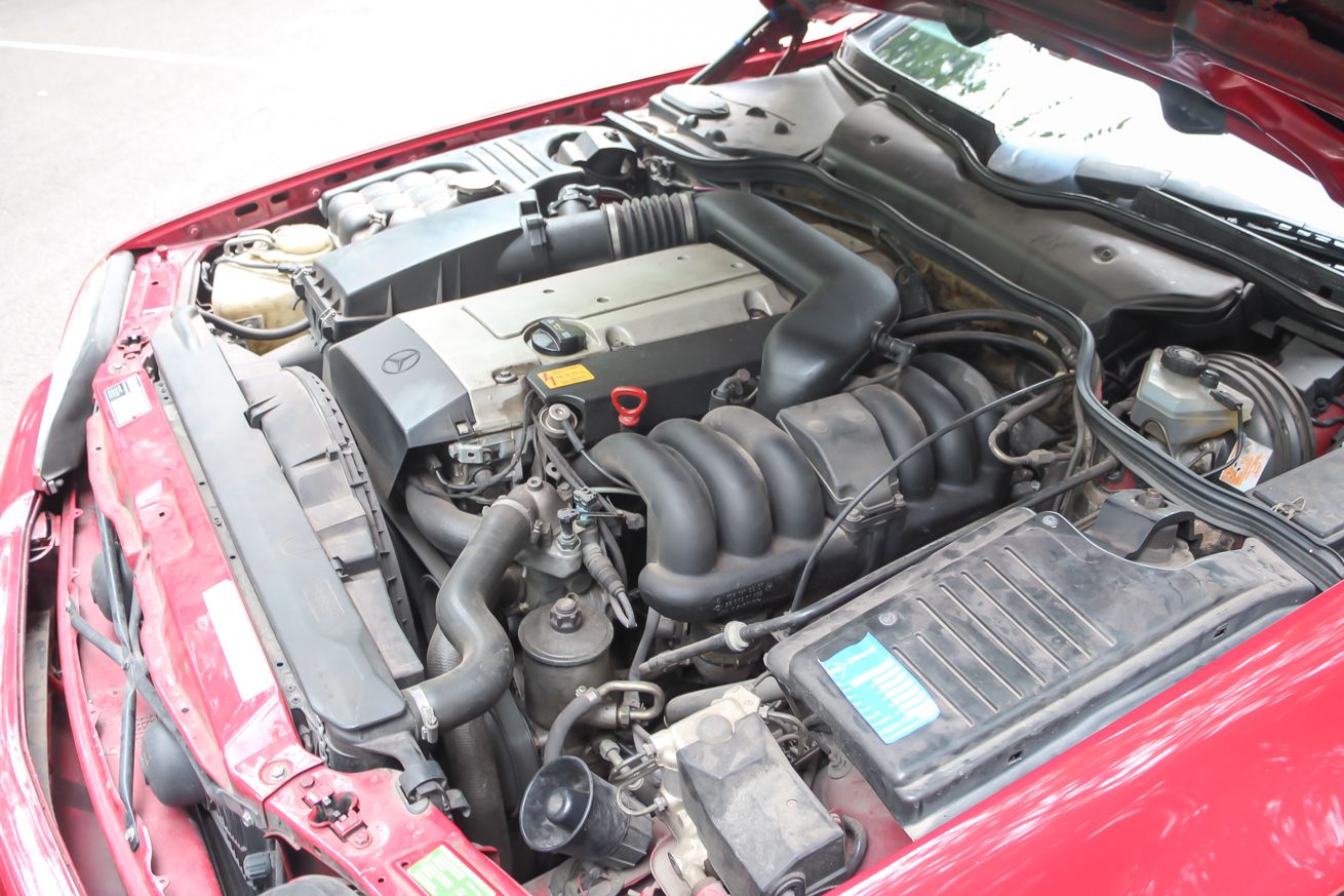 1993-ban minden motort hengerenként négyszelepesre cseréltek a Mercedesekben, és osztályokba rendezve nevezték el őket. A W124-ben megjelent, 15 fokkal jobbra döntve beépített M103-as háromliterest is egy új blokk váltotta. Az SL bemutatásakor már kínált 300 SL-24 M104-esét fejlesztették tovább. Készítettek belőle egy kisebbet, ez lett az SL 280, és egy nagyobbat, mint a kipróbált SL 320. A 320-as bár nem erősebb, mint elődje, de nagyobb a nyomatéka, és maximális erejét is alacsonyabb fordulaton adja le. A Mercedes-Benz első ötsebességes automata váltója 1989 szeptemberében az R129-es SL szériában, a 24 szelepes változat extrájaként jelent meg. Ebben a 320-asban már elektromosan vezérelt és széria volt. Karakterisztikája kapcsolóval állítható: E, mint Economy módban szépen pakolgatja a fokozatokat felfelé, S, mint Standard állásban egy kicsit tovább kipörgeti őket, és egy erősebb gázadásra akár kickdown nélkül is bármikor visszadob kettőt. Az SL 320 a menetadatok tanúsága szerint ugyanúgy megy, mint a korábbi 300 SL-24, de jobb a fogyasztása, és akár átalakítás nélkül is tudná az Euro 2-t, bár Euro 1-es. A gyári átlag 10,9, ez a valóságban inkább 14 liter vegyesben, ami egy 1780 kilós és 231 lóerős kocsitól normális.