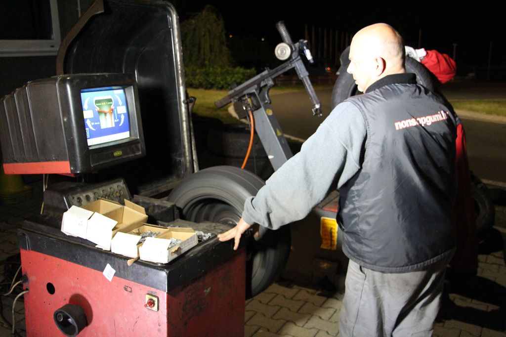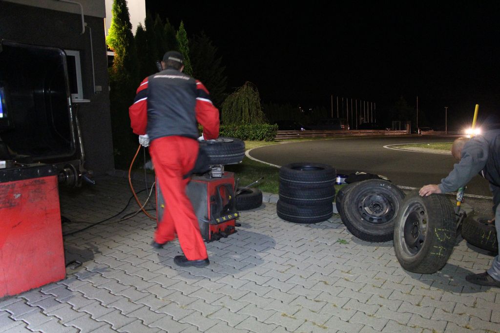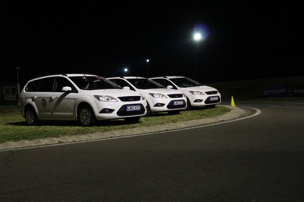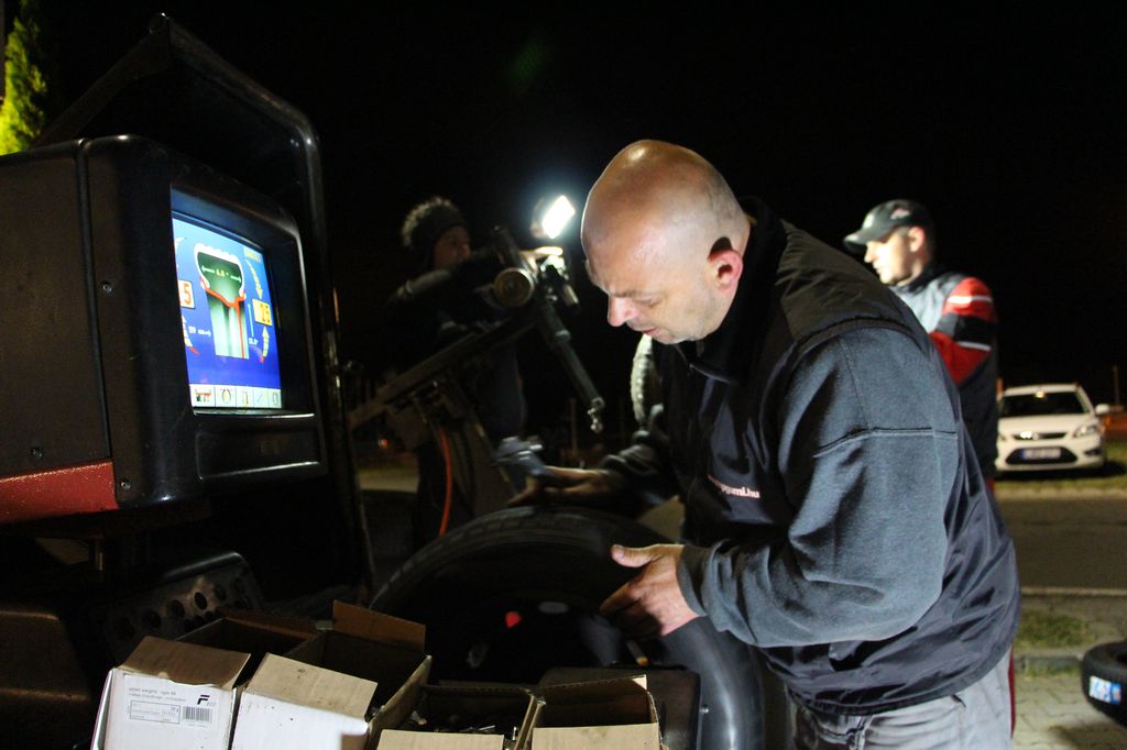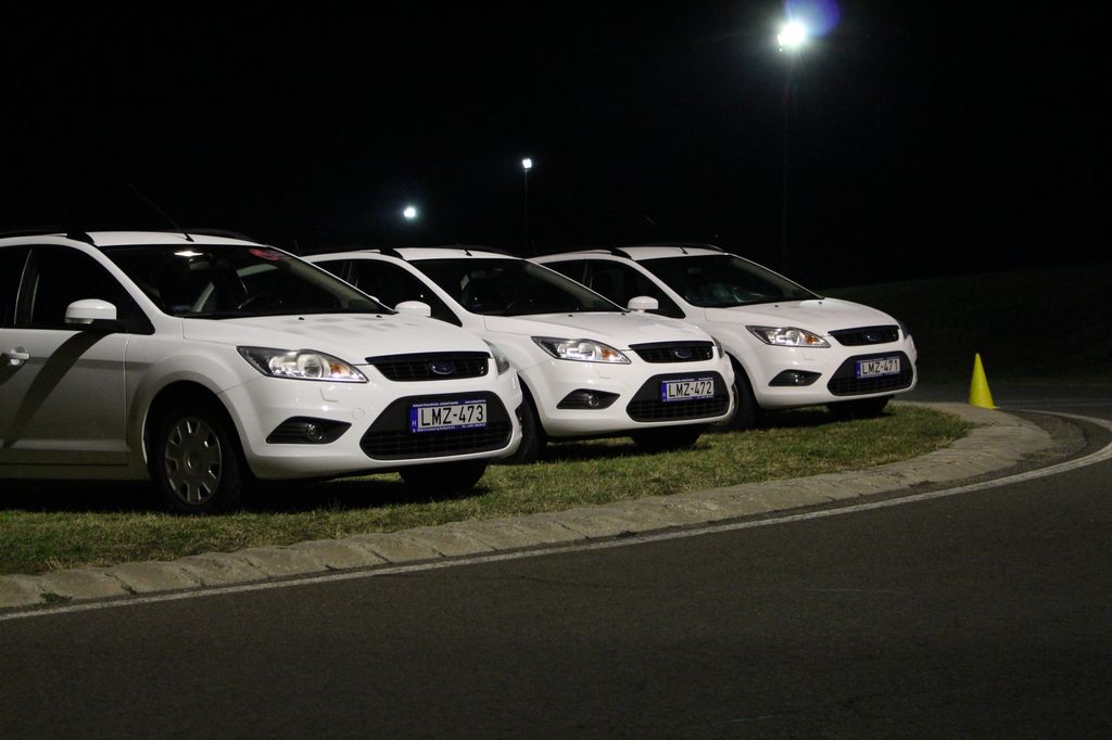 Összeszerveztük a csapatot és a jól megszokott hungaroringi Groupama Garancia tanpályán újra beültünk az ex-rendőr Ford Focusokba. Annak ellenére, hogy az ismételt mérést november 6-án éjszaka végeztük, az időjárás nem volt túl kegyes. Az idő száraz volt, a hőmérséklet viszont nappal tavasziasan alakult, amely késő estére is csak 9-10 °C-ra esett vissza. Az ökölszabályt szerint, amely alapján 7°C fok alatt javasolt a téli gumi, most akár nyári gumikkal is lehetett volna autózni, de nem ez volt a cél. A locsolt műgyantafelületen ugyanis még 7 °C felett is elvéreznek a nyári abroncsok a téliekkel szemben. Korábban egyébként tapasztaltunk olyat, hogy a gumi felületének hőmérséklete kapcsolatban van a műgyantán nyújtott teljesítménnyel. Tavaly éreztük ezt a leginkább egyes abroncsoknál, amikor a kapaszkodóképességet vizsgáltuk. Egy-két perc után jól látható volt, hogy a mérőeszköz egyre hosszabb időket mér az emelkedőn az első 30 méter megtételéhez. Ez pedig azt támasztja alá, hogy nem csak nyáron, de télen is számít a hőmérséklet-különbség, ezért mindenképpen érdemes vele számolni.