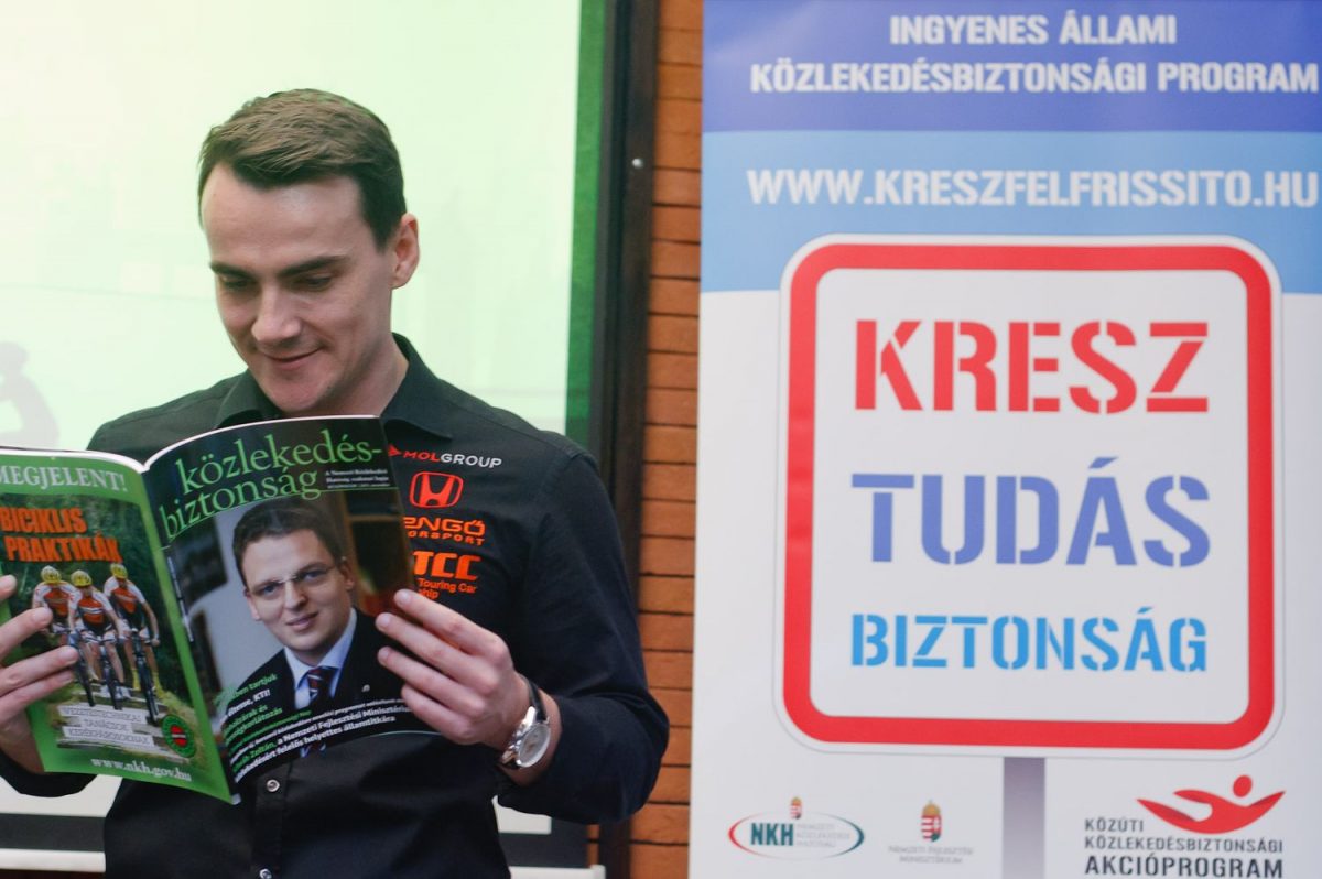 „Nem túl régóta van jogosítványom, de mióta közúton vezetek, változtak a magyarok közlekedési szokásai – kezdte a túraautó-világbajnokságban szereplő Michelisz Norbert. „Ahogy tapasztalom, egyre kulturáltabbak vagyunk a forgalomban. Pécsett és Budapesten, illetve a két város között országúton és autópályán is sokat vezetek, s míg korábban azt láttam, hogy agresszíven, türelmetlenül vesz részt a többség a forgalomban, addig mostanra sokat javult a helyzet. Jobban figyelünk a másikra, kicsit mintha előzékenyebbek lennénk egymással. Sokan azt gondolják, hogy világbajnok autóversenyzőként vadul száguldozok és nem ismerek veszélyt, de ez közel sincs így. A közutakon első a biztonság, türelmes sofőrnek tartom magam, persze engem is ki lehet hozni a sodromból, de alapvetően óvatos duhaj vagyok. A versenypálya ezzel szemben teljesen más, ott nem ismerek előzékenységet” – mesélte Norbi, aki amellett, hogy 97%-os eredményt ért el a KRESZ-teszten, teljesítette a számára előírt, nehezített gyakorlati feladatot: hátrafelé menetben is végigment a szűk szlalompályán – simán.