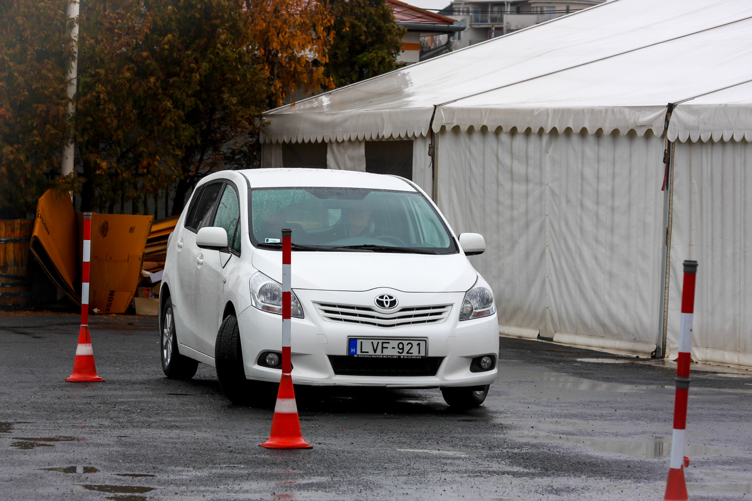 A tényleg jó szűkre vett pályán a sztárok vezette mindhárom autó sértetlen maradt. Norbi a Hondával hátramenetben is teljesítette a szlalomot