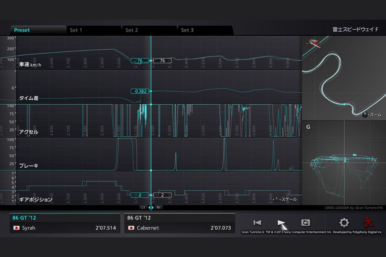 A Toyota ezt a potenciált kihasználva hozta ki legújabb fedélzeti elektronikáját. A Sonyval együttműködve fejlesztették ki a menetadatokat rögzítő Sport Drive Logger telemetriai rendszert. A napközben loggolt adatokat egy pendrive-val át lehet rakni a PS3 konzolra, és az azon futó Gran Turismo 6 játékkal külső-belső szemlélőként is újrafuthatóak a körök. Nem csak a pályarekord élhető át újra, de a hibák is rekonstruálhatók így. A kocsi összes fontos adatát eltárolja, így helyzetét GPS alapján, a pedál- és kormányállást, a fordulatszámot és a sebességfokozatot, ahogy a tempót is. Ezekből aztán a játékban megszokott jó minőségű virtuális képet kapunk természetesen több nézetben. A rendszer extraként egyelőre csak Japánban rendelhető, és ráadásként a Fuji, Tsubuka és a Suzuka pályákhoz segédletet is tartalmaz. Várhatón több pálya is meg fog jelenni hozzá, ahogy bevezetik Amerikában és Európában is.