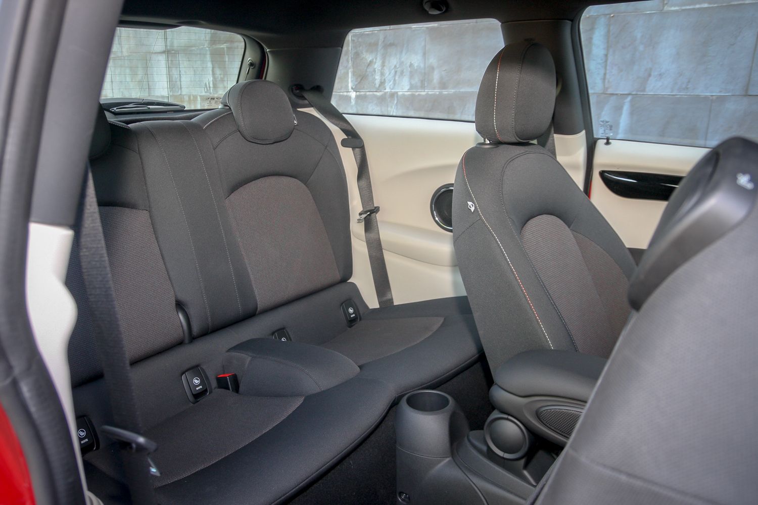 Én ezeket inkább nem kommentálnám, helyette tényszerűen kijelentem, hogy elöl kényelmes, sok helyet adó és számos hangulatvilágítással hangulatos a MINI, hátul meg vállban és térdben szűk, fejtérben remek. Hogy érezni-e a tengelytáv durván 3, a szélesség 4 centis növekedését? Talán. A világos ajtókárpitok növelik a térérzetet, annyi szent. Hátra/hátulról be/kiszállni nem kihívás, a két hátsó utas az elődhöz mérten nagyobb-kényelmesebb ülésekben utazgathat. És várhatja, hogy végre kiszállhasson.