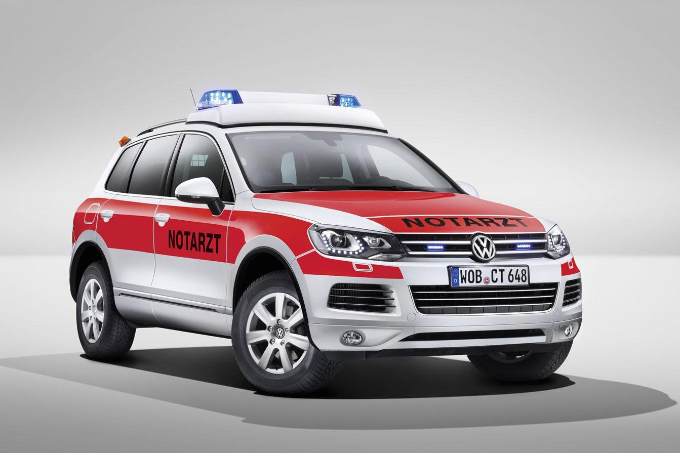 Hol vannak már a rendőrségi kettes Golfok, meg a hármasok a hazai utakról? Nagyon messze, főleg a Volkswagen legújabb gyárilag egyenruhás változataihoz képest. A mentő Touareg például kapott külső hangszórókat, LED-es kiegészítő fényforrásokat, és 3,0 literes, 245 lóerős V6-os TDI motor, meg öszkerékhajtás segíti az orvoscsapat betegekhez jutását.