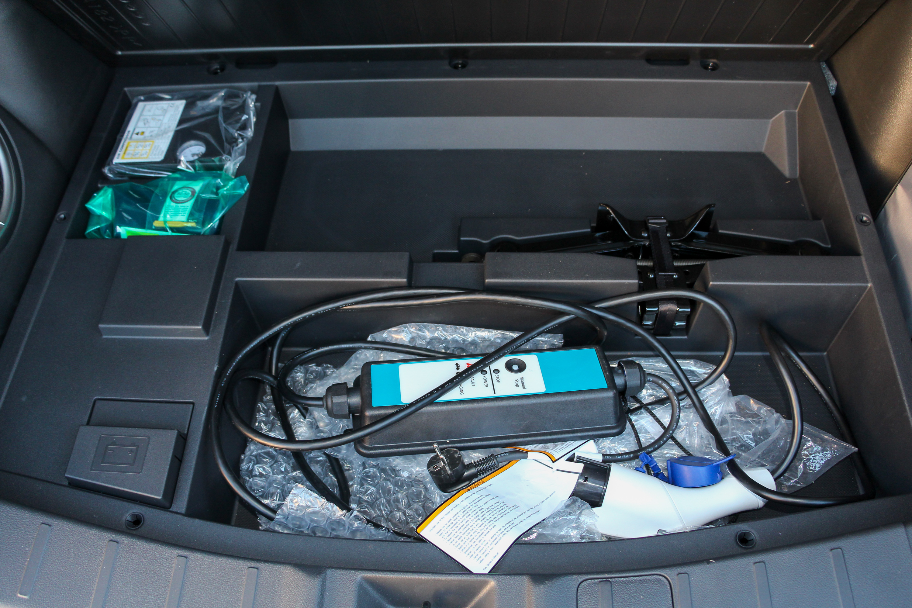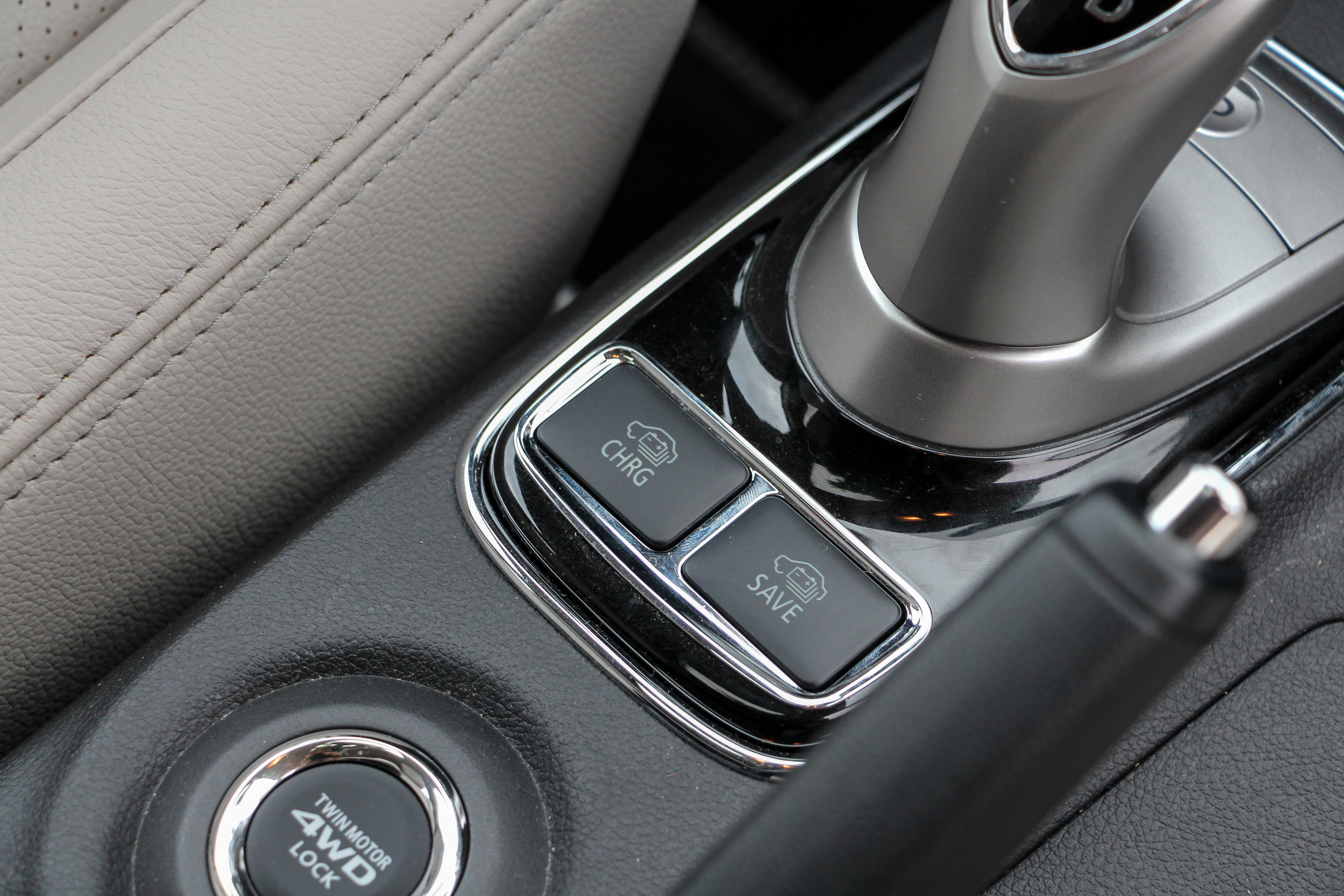 A hibridség jelei: fordulatszámmérő helyett energiamutatós, elektromos hatótáv-kijelzős műszerfal, irányváltó-kar és két töltőcsatlakozó; a PHEV gyorstöltést is fogad