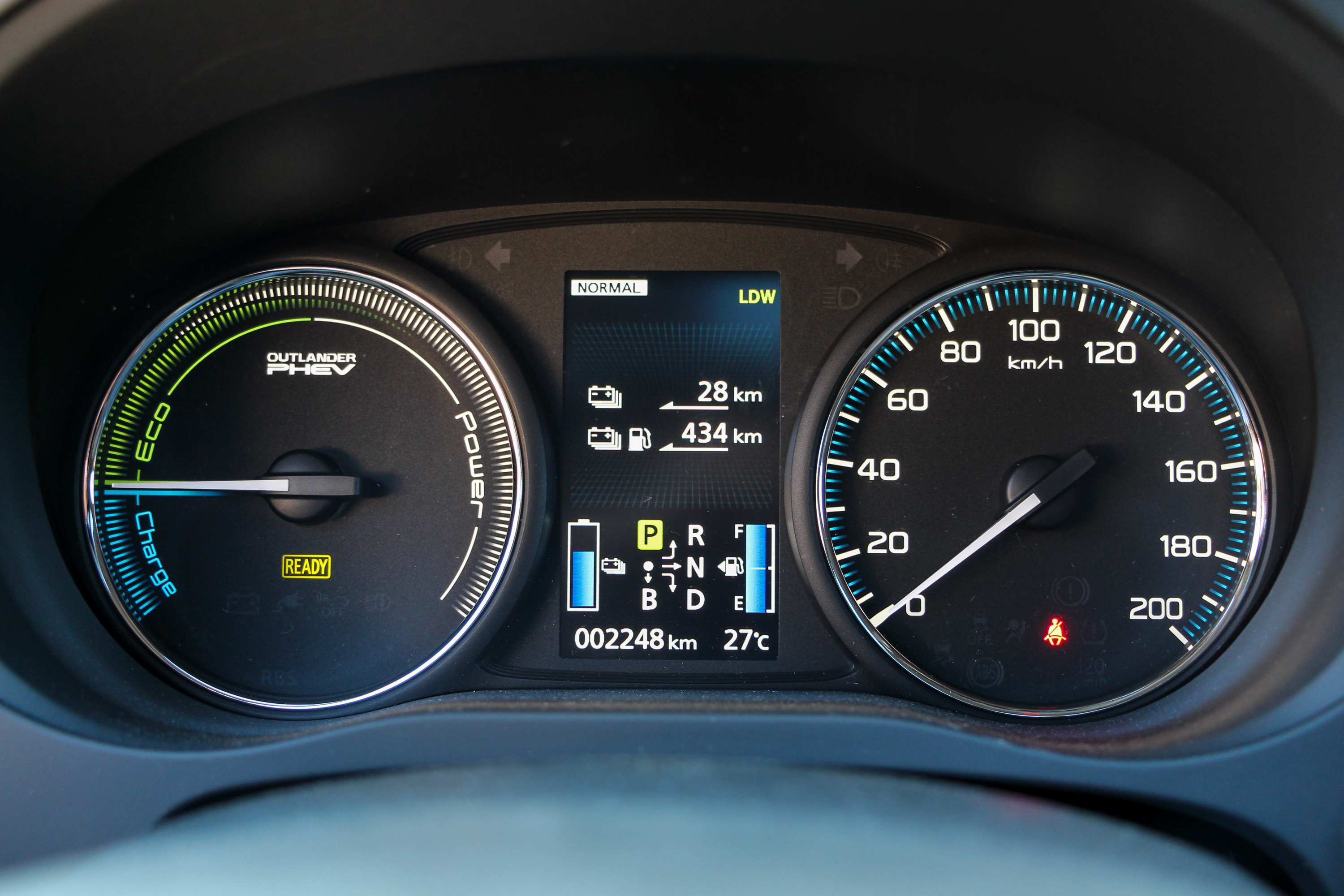 Az Outlander PHEV villanyautóként is igen jó menetdinamikát ad. Ha ki akarjuk használni képességeit, például 11 másodperces 100 km/órára gyorsítását, akkor már kénytelen beindulni a benzinmotor is, a villanymotorok csak annak áramtermelésével tudják leadni maximális teljesítményüket. Annyira kell az mondjuk, mint a turbódízeleknél az overboost – elvétve van rá szükség. Hibridtől nem szokatlan, hogy az egyetlen előremeneteli fokozaton túl B állás is van, a váltókarral irányváltóval két, az automataváltósoktól ismert kormányoszlopi szarvakkal 5 fokozatban szabályozhatjuk a fokozott rekuperációt. Érdemes, hiszen töltést, emissziómentes (kiló)métereket nyerünk, fékcserét odázunk vele.