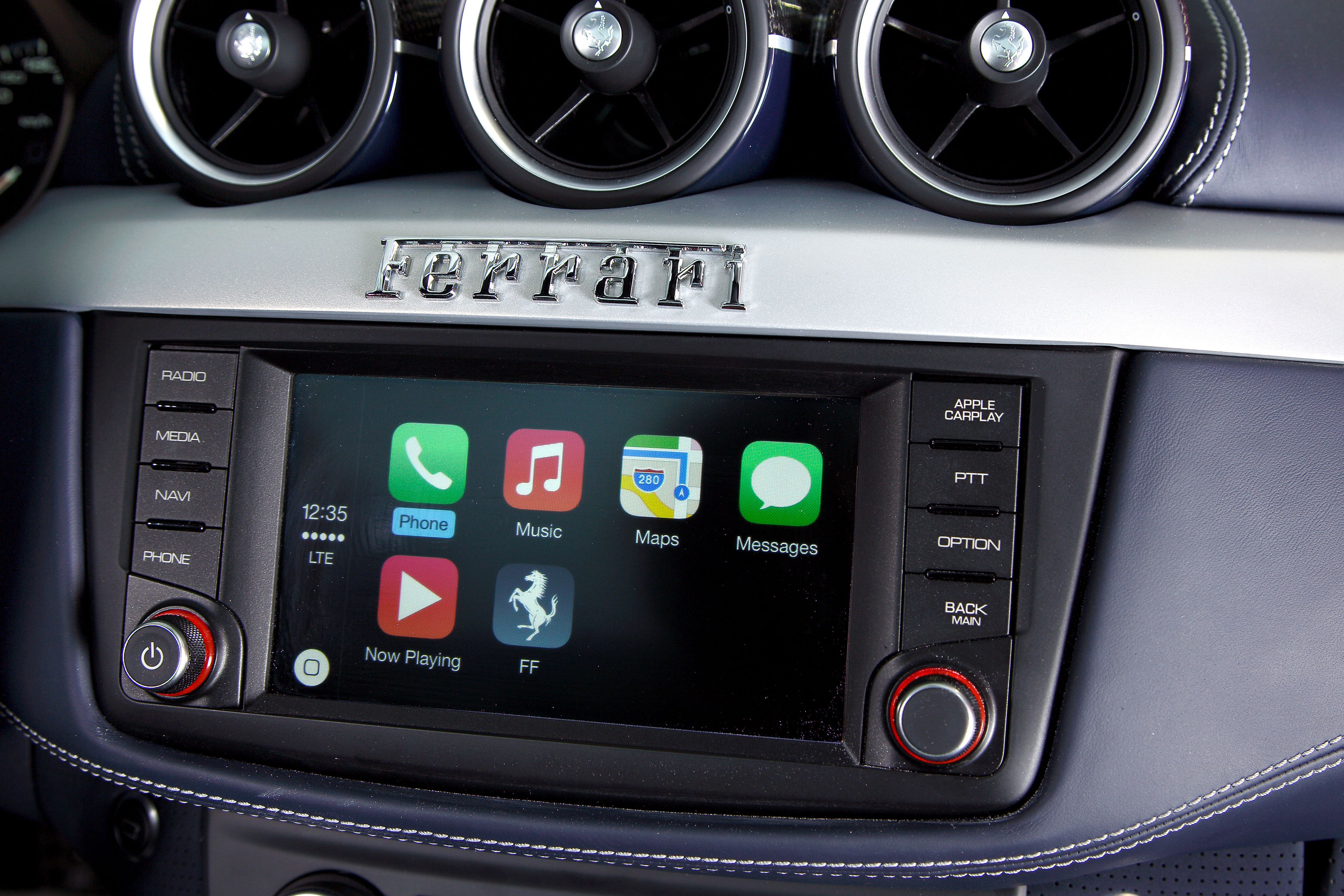 A Ferrari FF-hez is rendelhető már az Apple CarPlay, és bőrbe varrva sem mutat rosszul. Az almás Ferrari tulajok legnagyobb örömére