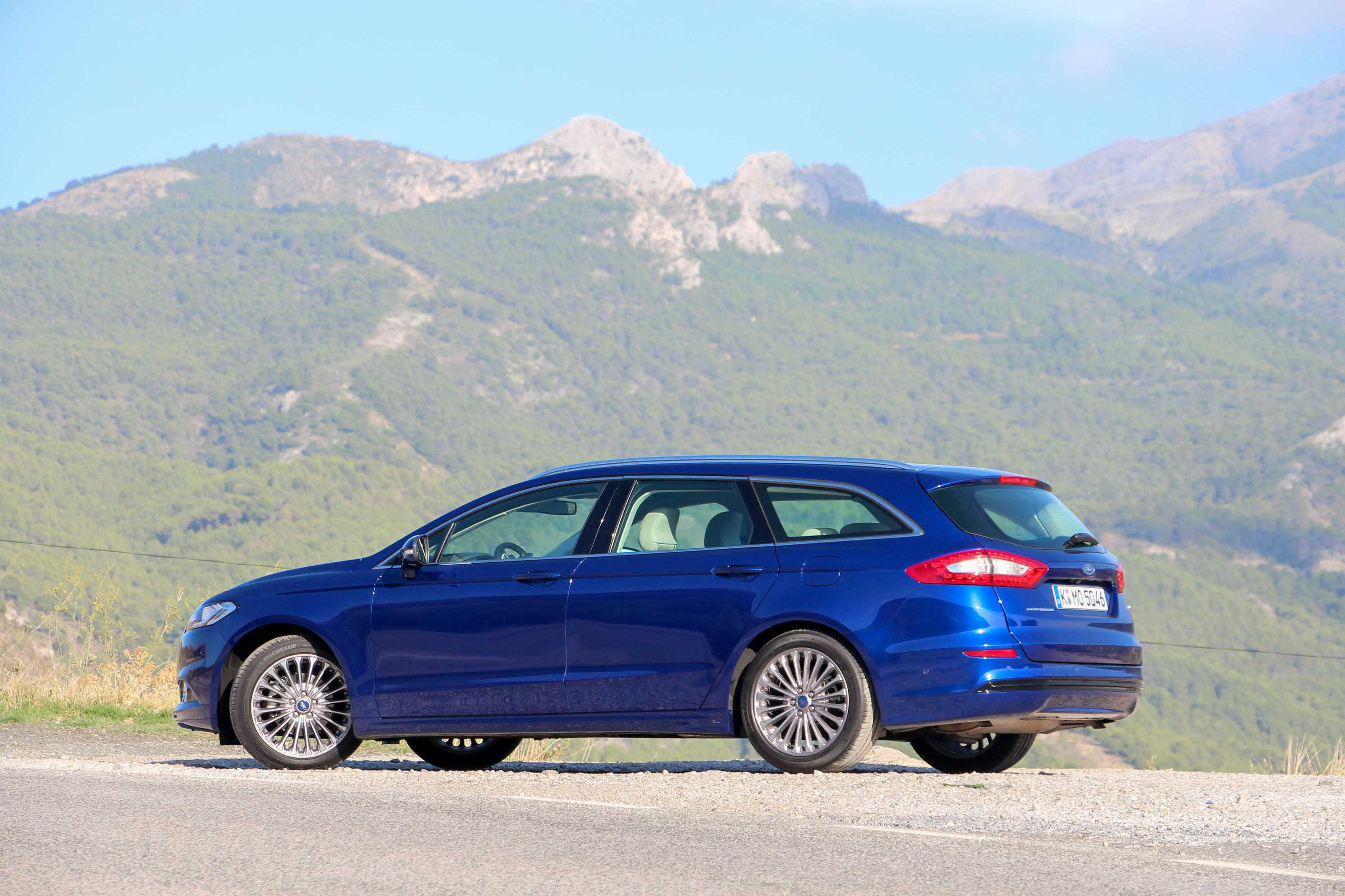 A kombit az új 1.5 EcoBoost 160 lóerős – kezdeti alap – benzinessel lehetett vezetni. 1500 1/perctől elviszi, de érzésre nem mozgatja túl dinamikusan a 1,5 tonnás autót. Emelkedőn induláskor izzad. A Mondeo első elektromechanikus (parkolóasszisztenst is lehetővé tevő) kormányműve pedig eléggé szintetikusra sikeredett. A futómű továbbra is elöl MacPherson, hátul független, a korábbi ControlBlade rendszert váltó IntegralLink azonban teljesen új. Továbbra is választható adaptív és hangolható (Normal, Sport, Comfort) állást kínáló lengéscsillapítás, ám már nem dedikált gombbal, hanem csak menüből kapcsolhatóan. Az alapáras passzív csillapítás olyan kellemesnek tűnt Andalúzia útjain, hogy nem is feltétlenül ajánlanám az amúgy csakis csomagban, csakis a gazdagabb Titanium felszereltséghez, adaptív tempomattal, kulcsnélküli ajtónyitással és motorindítással, holttérfigyelővel, első-hátsó parkolóradarral és elektromosan állítható, memóriás kormányoszloppal együtt rendelhető, velük együtt 695 000 forintba kerülő, és a 180 lóerős 2.0 TDCi-vel ötajtós karosszériával próbált CCD elektronikus lengéscsillapító-szabályzást.
