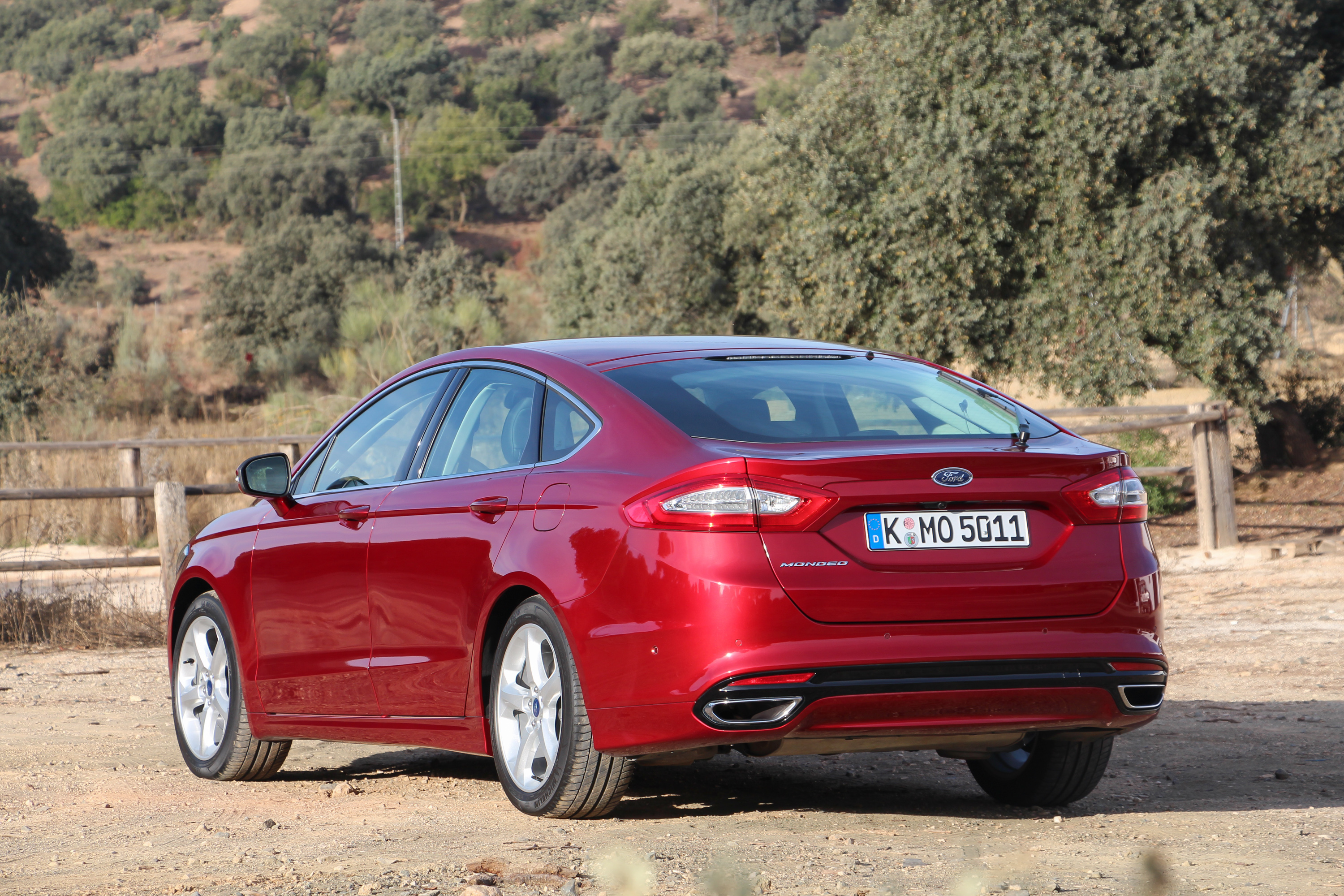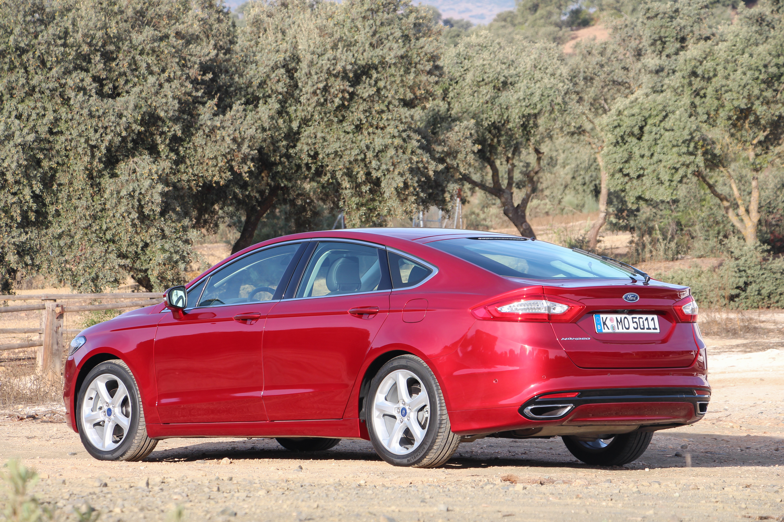 Merőben új a motorpaletta, ami végleteit, a kategóriában elsőként megjelenő egyliteres, háromhengeres, háromszoros Év Motorja díjas 125 lóerős EcoBoost benzinest és a 210 lóerős 2,0 literes biturbó dízelt csak jövőre fogja hozni – legalábbis hozzánk. Benzinesből van még 1,5 literes 160 lóerős és 2,0 literes 203-240 lóerős, dízelből 1.6 TDCi 115 LE és 2.0 TDCi 150-180 LE. Az összes egység turbós és közvetlen befecskendezésű, a váltók mind hatfokozatúak, a benzinesek automatái hagyományosak, a dízelek kettős kuplungosat kapnak. A még Euro5 normás 1.6-os dízeleket jövőre azonos teljesítményű 1.5-ös Euro6-os váltja. Kézi váltóval a legtakarékosabb Mondeo az ültetett futóműves, javított légellenállású, speciális váltóáttételezésű, alacsony gördülési ellenállású abroncsos 1.6 TDCi ECOnetic, ami elvileg mindössze 3,6 liter gázolajjal képes megtenni 100 kilométert, CO2 emissziója mindössze 94 g/km. Automatával pedig a 2,0 literes, Atkinson ciklusú (Toyota-licencből származó) benzinest és fokozatmentes váltóként is játszó bolygóművében két villanymotort, pontosabban egy generátort és egy villanymotort rejtő Hybrid adja. Utóbbi esetén 187 lóerő a rendszer kombinált teljesítménye, a benzinmotor külön 141 lóerős, a villany 120 lóerő (88 kW) maximális teljesítményű. Az akkumulátor 1,4 kWh-s, 35 kW-os, mellyel néhány kilométert és akár 135 km/órás sebességgel is mehet tisztán elektromosan, emissziómentesen a Hybrid. A hajtáslánc elvileg hasonló elvű, mint a Toyota Priusé, de azért nem teljesen olyan. Itt nincs azonnali visszatermelés a gázpedál elengedésekor, akkor vitorlázó üzemmód van szétkapcsolt hajtáslánccal, az energiavisszatáplálás csak a fékre lépve indul meg.