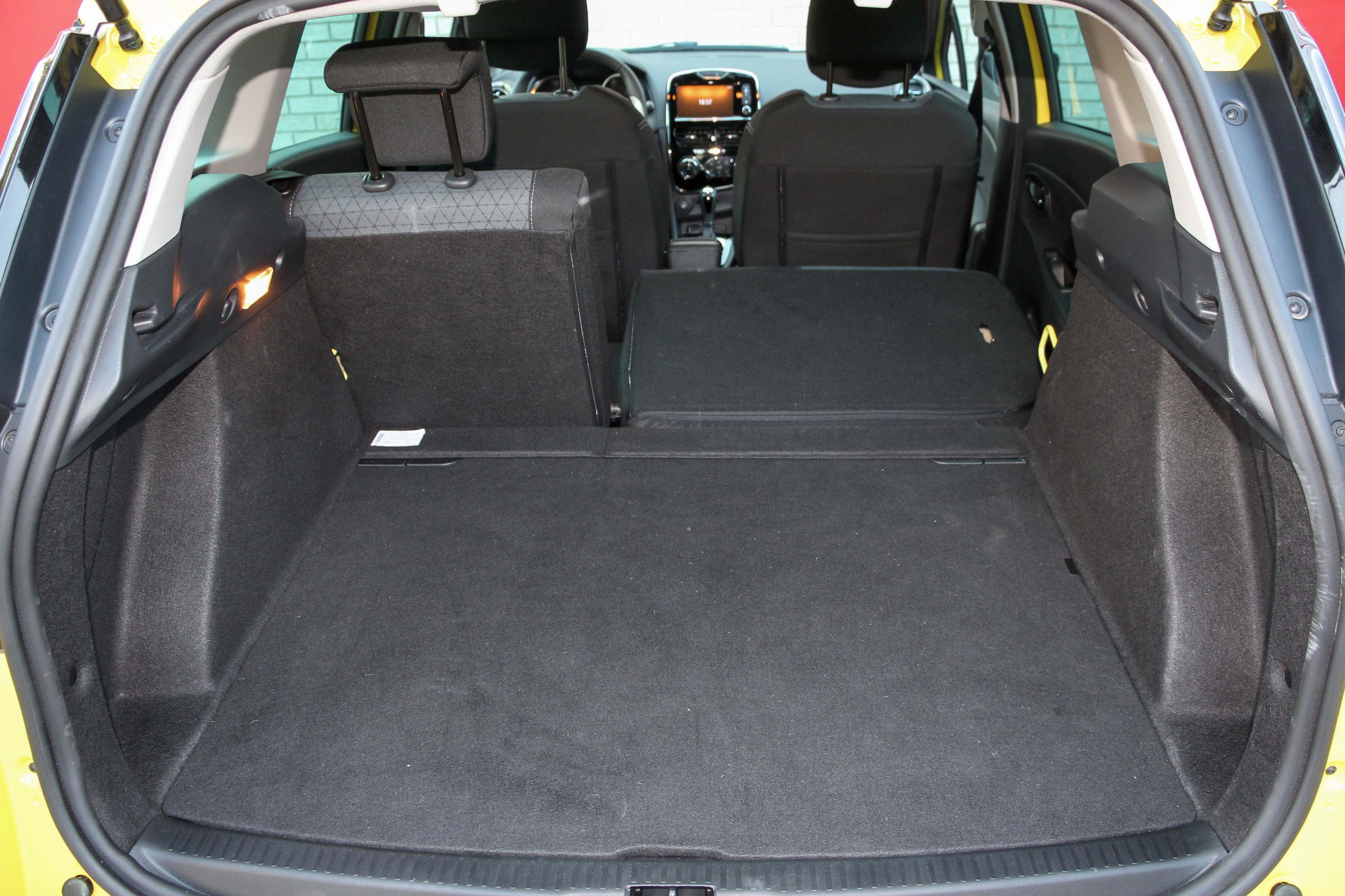 Fontosabb persze, hogy az utastér egészen jó kidolgozású, hogy az ajtókra és az ülésekre akár jókora – cserélhető és mosható – színes betétek is kérhetők, hogy a kormány közvetlen, hogy a futómű kisautós szinten csillapításával és stabilitásával is a jobbak között van, és hogy a fékrendszer még úgy is jó, hogy hátul csak dobok lassítanak. A vezetői pozíció hibátlan, az első ülések kényelmesek. Hátul kicsit rövid az ülőlap, átlagtermetű sofőr mögött sem túl nagy a lábtér. Hiába, a Clio kisautó, a Grandtour pedig változatlan tengelytávval ad 20,5 centiméter hosszabbítást. A csomagtér legalább nagy, 443 literes, 1,01 méter széles, alapból 82, a hátsó üléstámla síkba fektethetőségével 1,56 méter hosszú, és még az anyósülés támlája is lefektethető, hogy 2,5 méteres raktérhosszt kapjunk.