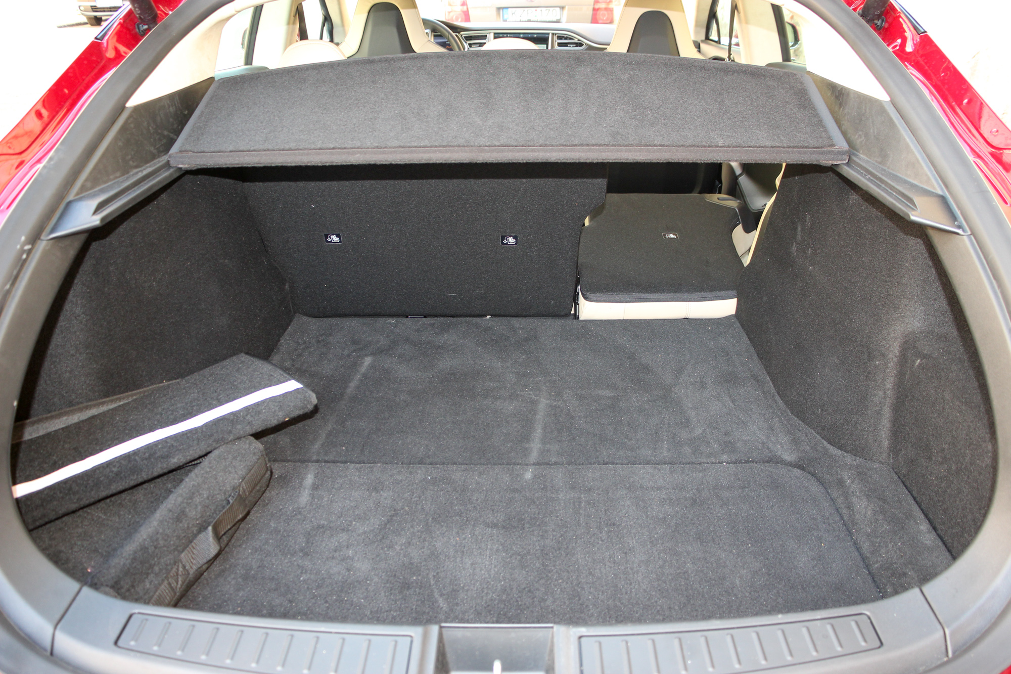 Gyerekülés? Tehetik fel sokan a kérdést, amikor ez egy 421 lóerős, 600 Nm nyomatékú, 100 km/órára 4,4 másodperc alatt gyorsító, sportosnak is nevezhető autó. Ráadásul benzinfogyasztás nélkül, ugyanis a hátsó kerekeket a közéjük szerelt villanymotor hajtja emissziómentesen és gyakorlatilag némán, hiszen a Tesla csakis villanyautókat gyárt. A Model S nem csak a világ első teljesen elektromos luxusautója, hanem az első olyan limuzin, amit eredendően villanyautónak terveztek. Alumínium karosszériájában így nincs gépház, elöl és hátul is csomagtér van az utascella körül. Az első csomagtér 150, a hátsó 745 literes. Tegyük gyorsan hozzá, hogy tetőig, azaz a lejtős hátsó ablakig pakolva, az Egyesült Államokban (ahonnan a Tesla származik) a kalaptartó, azaz a csomagtértakaró ismeretlen fogalom, senkit sem zavar, ha belátnak oda. Európa kedvéért ma már opcióként kérhető a hajtogatható kalaptartó, ára nem szerény: 200 euró.