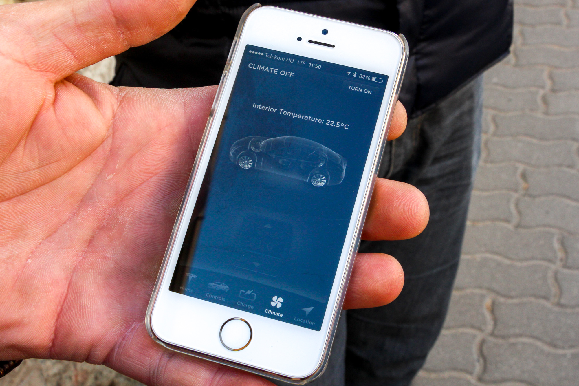 Érdekes a nyitás-zárás is, alap, hogy okoskulcsos az autó, ráadásul a Tesla van annyira stílusos, hogy a jeladó egy zsebben hordható, kerekded kisautó. De az igazi kunszt az, hogy a párosított, feltanított iPhone-ról is nyithatjuk-zárhatjuk az autót, sőt a telefon érintőképernyőjét nyomkodva tülkölhetünk is. Az érintőképernyő az utastérben is visszatérő elem. A középkonzolon egy szolid 17 colos érintőpult helyettesíti a gombokat. Egészen jól, ugyanis a klíma, illetve az audiorendszer például az aljánál fix felületről vezérelhető. A fenti óriási részen még mindig jut elegendő terület ahhoz, hogy azon osztott képernyősen, egyszerre jelenjen meg kellően nagyban a navigáció és mondjuk az energiafolyam ábrája. Hogy milyen gombokat kapunk az érintőfelületre, az csak szoftver kérdése. Mókás például, ahogyan az óriási – a teljes mennyezetet jelentő – panorámatető első szegmensét az autó ábrájára kattintással „húzhatjuk hátra”. A parkolókamera HD minőségű, és talán mondani sem kell, óriási képen jelenik meg.