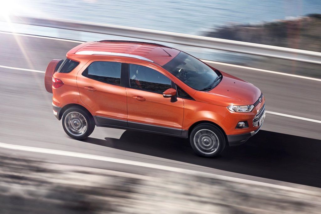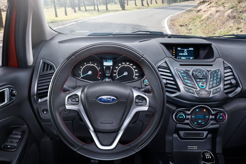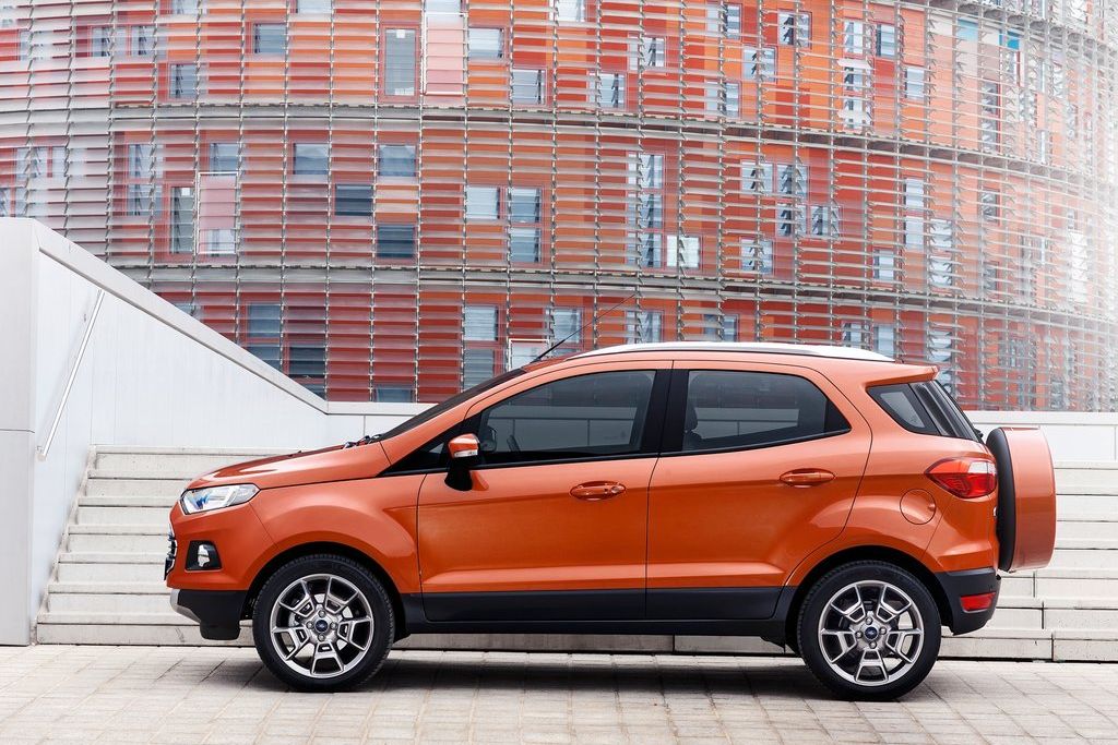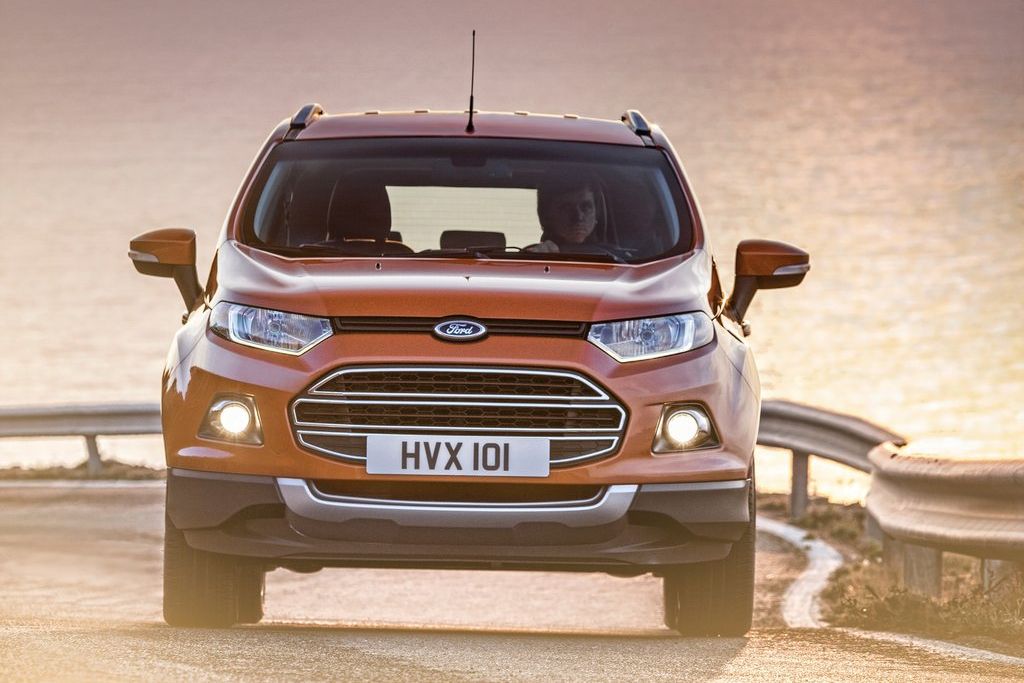 Innen már-már Range Rover Evoque a brazil tervezésű Ford EcoSport, amely a kisméretű városi álterepjárók egyre népesebb mezőnyébe érkezik jó nagy arccal, fiatalos kiállással