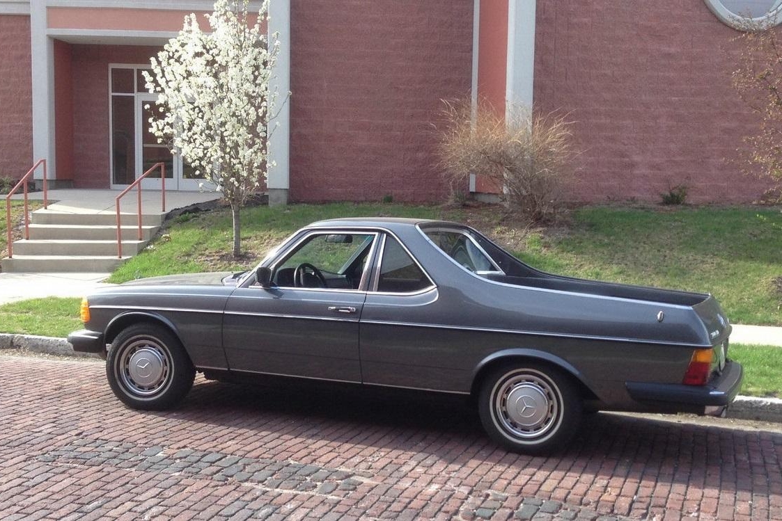 Az ebay aukciói között most felbukkant platós példány azonban teljesen egyedi ajánlat, ezt az Egyesült Államokban építették egy ’80-as évekbeli Chevrolet El Camino farrészének felhasználásával. A munka állítólag annyira szépen sikerült, hogy még a helyi Mercedes-kereskedésben is elgondolkoztak az alkalmazottak, hogy esetleg gyári kivitelről van-e szó, ám ilyen variánst a Mercedes sosem készített.