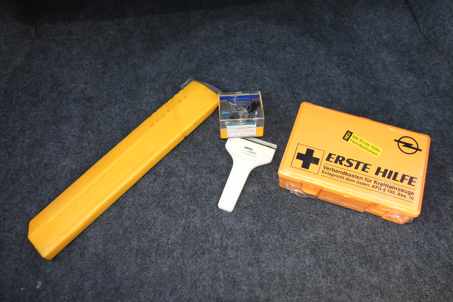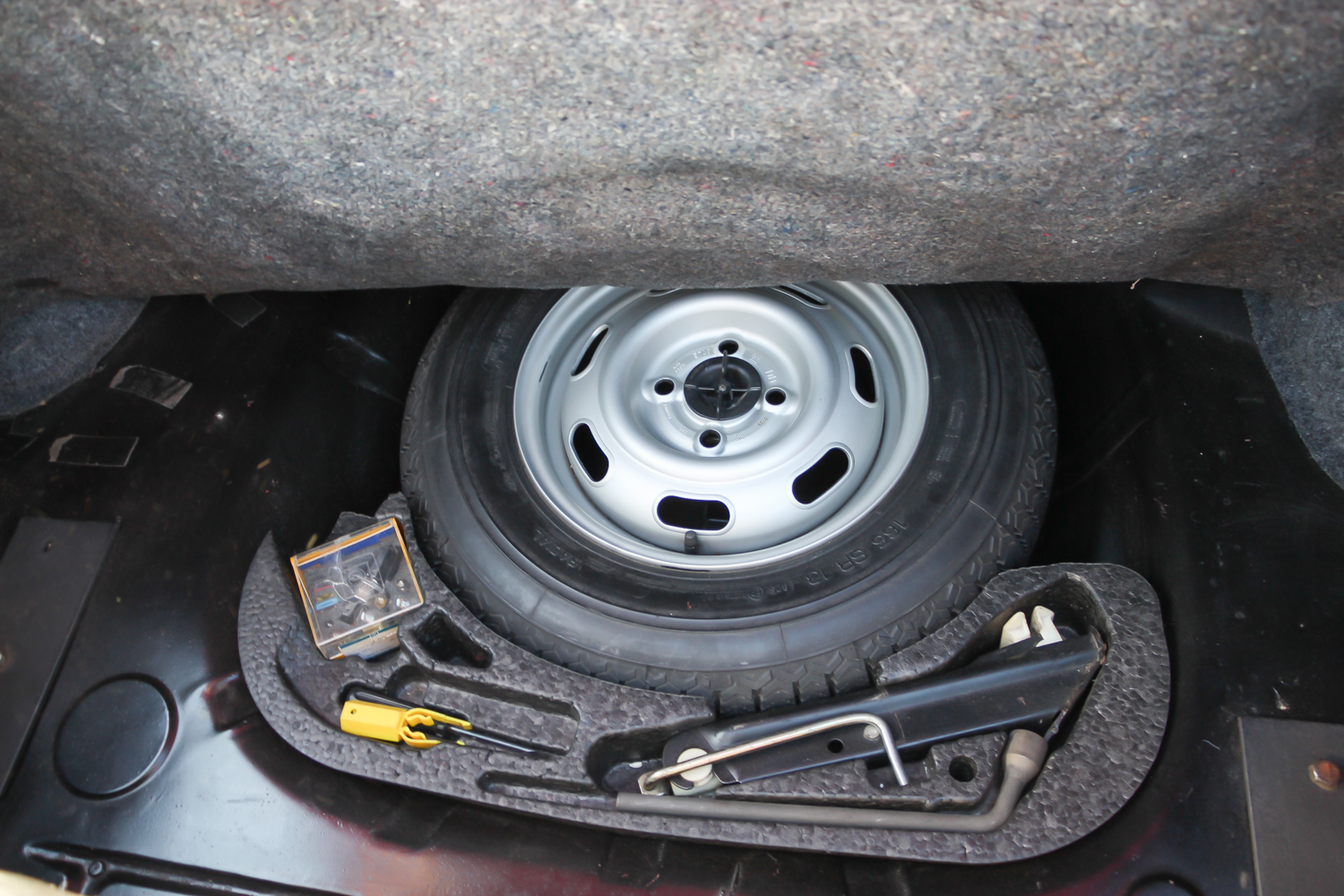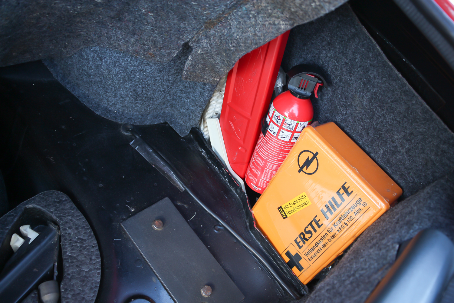 Limuzincsomagtartó az eredeti pótkerékkel, az eredeti elsősegély dobozzal. Persze eldugva van egy érvényes szavatosságú is