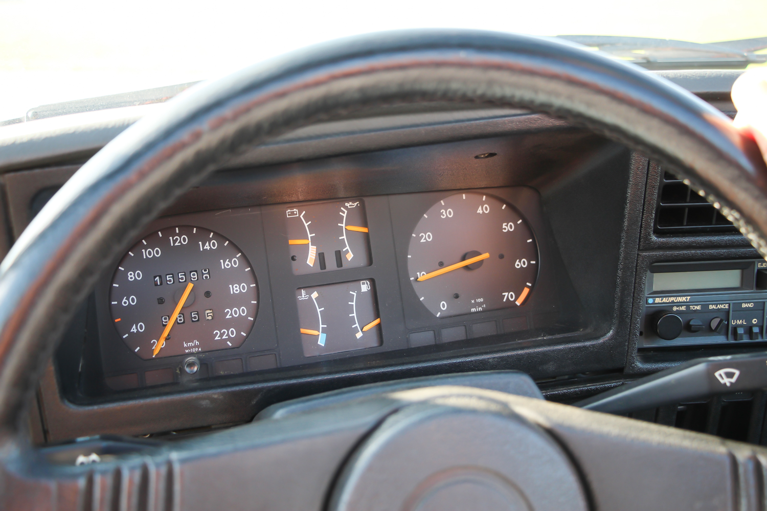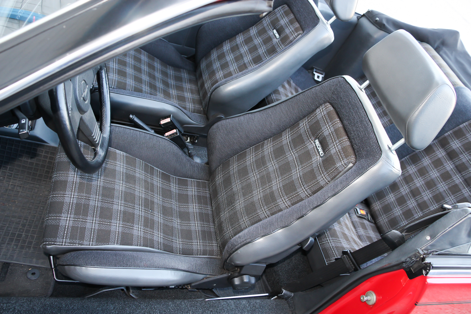 A klasszikus, korabeli Opel óra, a Recarók és a keskeny hátsó helyek. Négyszemélyes, de a típusbizonyítvány miatt be kellett rakni egy ötödik biztonsági övet