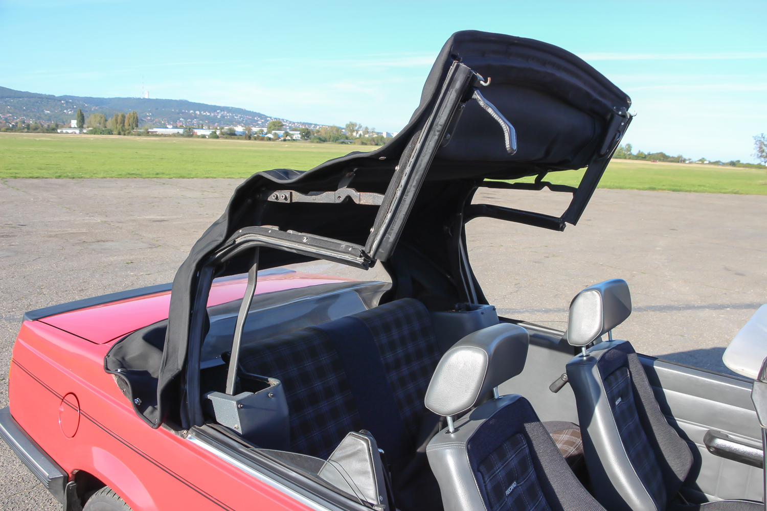 Egy rövidebb kör után, zárt tetővel kimegyünk autópályára is a kabrióval. Péter 14 év alatt egyetlen egyszer, a Balatonról hazafelé ment esőben az autójával. Ehhez mérten nem túlzás, hogy szeptemberben már túl volt a téli felkészítsen. Ennek része, hogy a féléves állásra készülve kissé túlfújja a gumikat. Az abroncsoknak ez még persze bőven a gyárilag megadott tűréshatáron belül van, de így már nagyon ráz a mai szemmel csavarodásra hajlamos kabrió. Péter csóválja a fejét, az idegen neszek miatt, de már nem volt ideje a találkozónk előtt nyomást állítani. Meg kell jegyezni, hogy a Voll kabrió utólagos átépítéshez mérten és a korabeli vászontetősökhöz képest sem csavarodik vészesen. És a hazai közúthálózat csodája: végre van egy szakasz ahol hibátlan az aszfalt és zörejek nélkül, szinte repülünk.