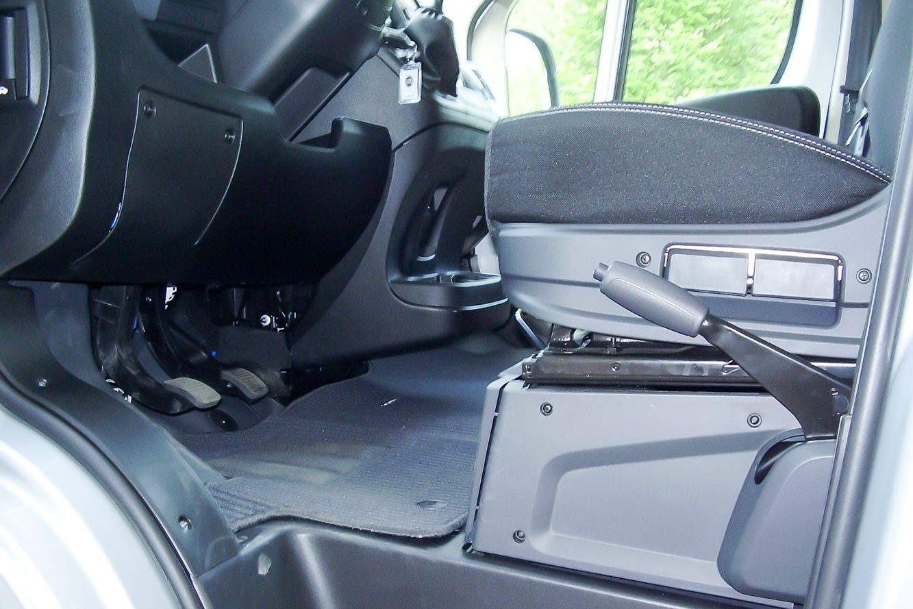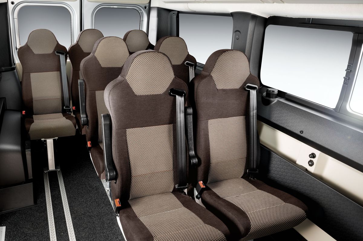 Teherautós a beltér, minősége nem a Transit szintje. Hátulra légrugó és dupla rugó is rendelhető, de a hagyományos merev tengely is strapabíró. Fellépő kérhető, de nem integrált, mint a Transiton