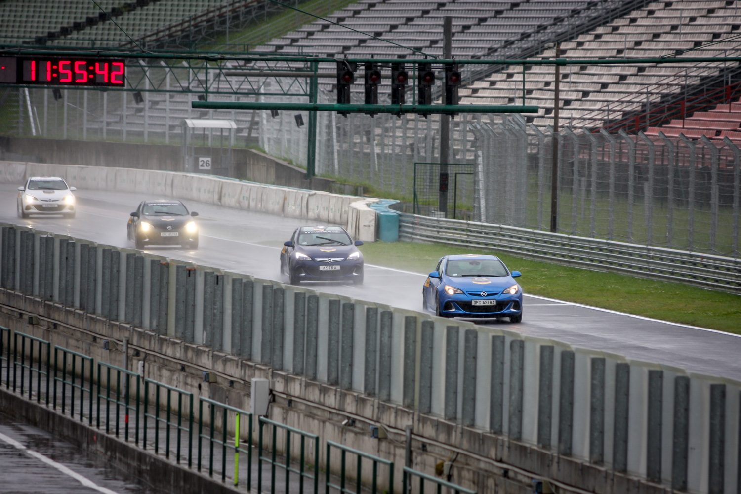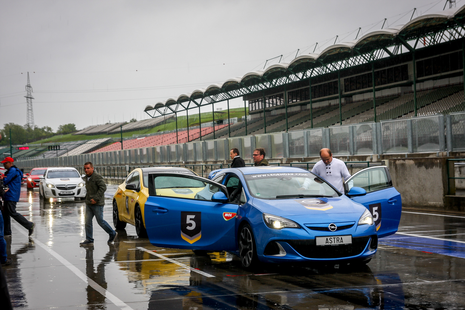 Nekünk csütörtökön nem volt szerencsénk az időjárással, azonban szombatra az opelesek jobb időt rendeltek, s ha nem is lesz meleg és napsütés, a programok nagy része fedett „pályán, a bokszokban is jó mókának ígérkezik. A Hungaroring aszfaltján meg az Astra OPC-k és az Insignia OPC-k az esetleges esős, vizes körülmények közt is valószínűleg felejthetetlen élményt adnak azoknak, akik taxizást nyernek – az instruktorok értő kezei közt nagyot lép a 280 lóerős Astra és a még izmosabb, 325 lovas és összkerékhajtású Insignia OPC.