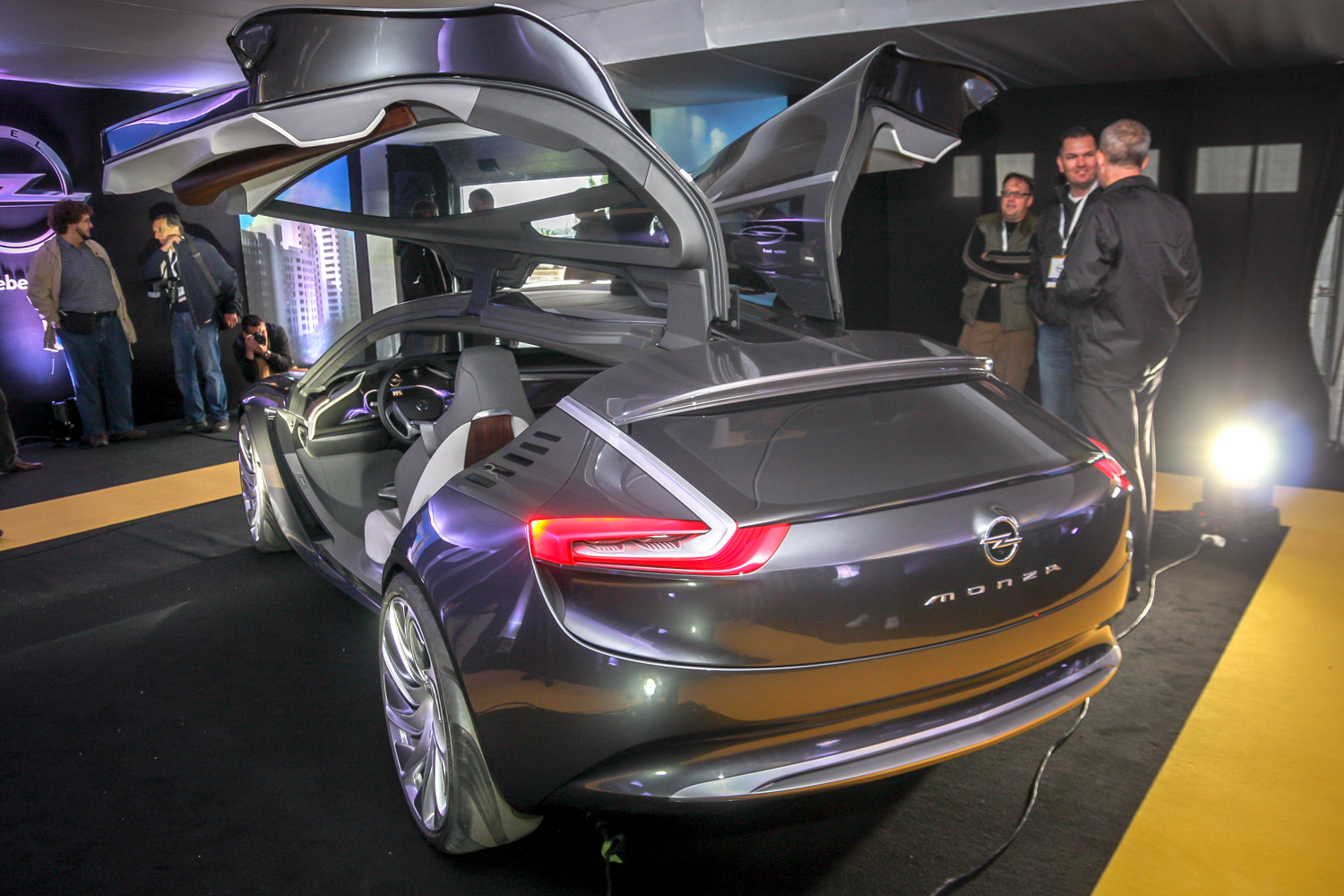 Magyarországon először és talán utoljára lehet találkozni személyesen a Monza tanulmánnyal. Oldalanként egy-egy felfelé nyíló ajtaja, azaz inkább szárnya van, hosszú, széles, lapos, utastere szédületesen futurisztikus. Hajtásáról hatótávnövelőként 1,0 literes, 3 hengeres benzines turbómotor gondoskodik CNG-üzemmel, különben elektromosan menne, mint az Ampera is