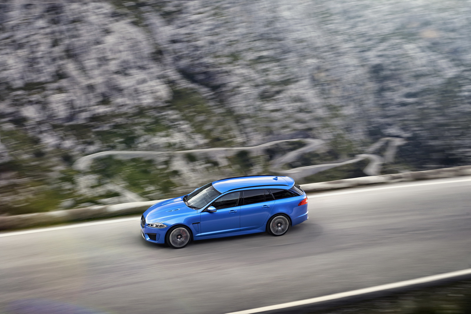 A kék kombiban is a szedán sportváltozatát hajtó 5,0 literes, kompresszoros feltöltésű V8-as fog dolgozni. Ereje 550 lóerő, forgatónyomatéka 680 Nm, amit a ZF több modellben is jól szolgáló nyolcfokozatú automata váltója ad át a hátsó kerekeknek. A szokásos hárombetűsökön kívül egy elektronikus vezérlésű differenciálmű segíti az erő útra vitelét. A kötények és a légbeömlők teszik jaguarosan morcossá