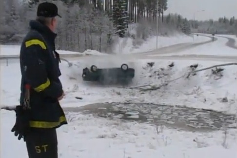 Itthon messze még a valódi tél, talán nem is lesz, bár azért sokan vágyunk rá. Főként a sípályák számára remélt a havazás, a közlekedésben azonban sok nehézséget, fennakadást, balesetveszélyt tud az okozni. Erre még olyan helyeken is érdemes felhívni a figyelmet, ahol azért a hazainál gyakoribb és komolyabb hóesés jellemző. Az alábbi videón épp Svédországban beszélne a katasztrófavédelem illetékese a csúszós utak kapcsán, s meg is kapja a megfelelő illusztrációt a masszívan havas utakon túl is: egy Audi esik le az útról, s borul feje tetejére.[BANNER type="1"]