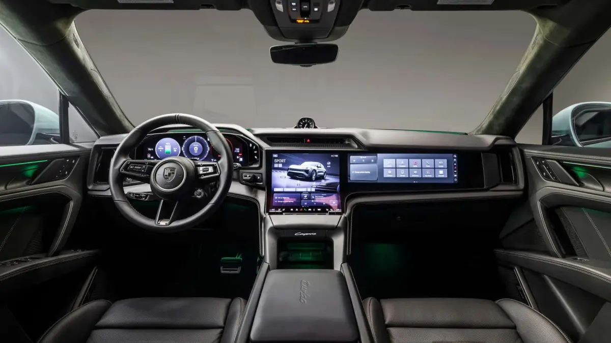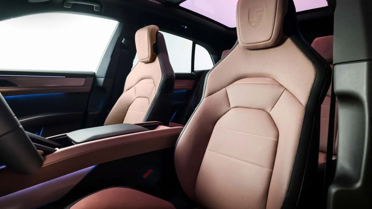 Az utastérben a folyamatosan növekvő képernyőfelület ellenére mégis sikerült egy jellegzetes Porsche műszerfalat rajzolni. A kormánykerék a három órát imitáló képernyővel stílusos, a formavilág hagyományos elemekkel rendelkezik. A műszeregység egy 14,3 colos OLED kijelző, középen pedig egy ívelt OLED érintőképernyő található, amelyen az infotainment mellett a klímavezérlő is helyet kapott. Opcionálisan egy 14,9 colos utasoldali kijelző is elérhető.
