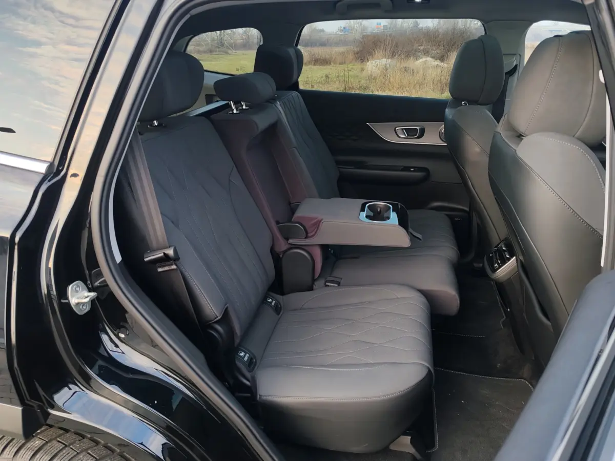 Ami a helykínálatot és a kényelmet illeti, az utastérben ezen nem spóroltak a kínaiak. Kényelmes a fej- és a lábtér is a középső sorban, az állítható háttámla mellett akad szellőző, ülésfűtés, illetve pohártartó is, a sínen előre és hátra mozgatható paddal a harmadik sornak is lehetséges kényelmes lábteret biztosítani. Leghátul a fejtér már kérdéses, ám nem kevesebb, mint a konkurensekben. A szükségülések tartása és anyaga is elmegy, pohártartók is jutottak a harmadik sorba, szóval ezen a téren minden rendben. A csomagtartóból azonban hiányzik az a néhány centi a két szükségülés mögül, amivel a konkurensek hosszabbak a Tiggo 8-nál. Illetve ami még fontosabb: a kalaptartót, a töltőkábelt és az egyéb kiegészítőket sincs hová tenni ebben a konfigurációban, így azok is innen foglalják a minimális helyet.