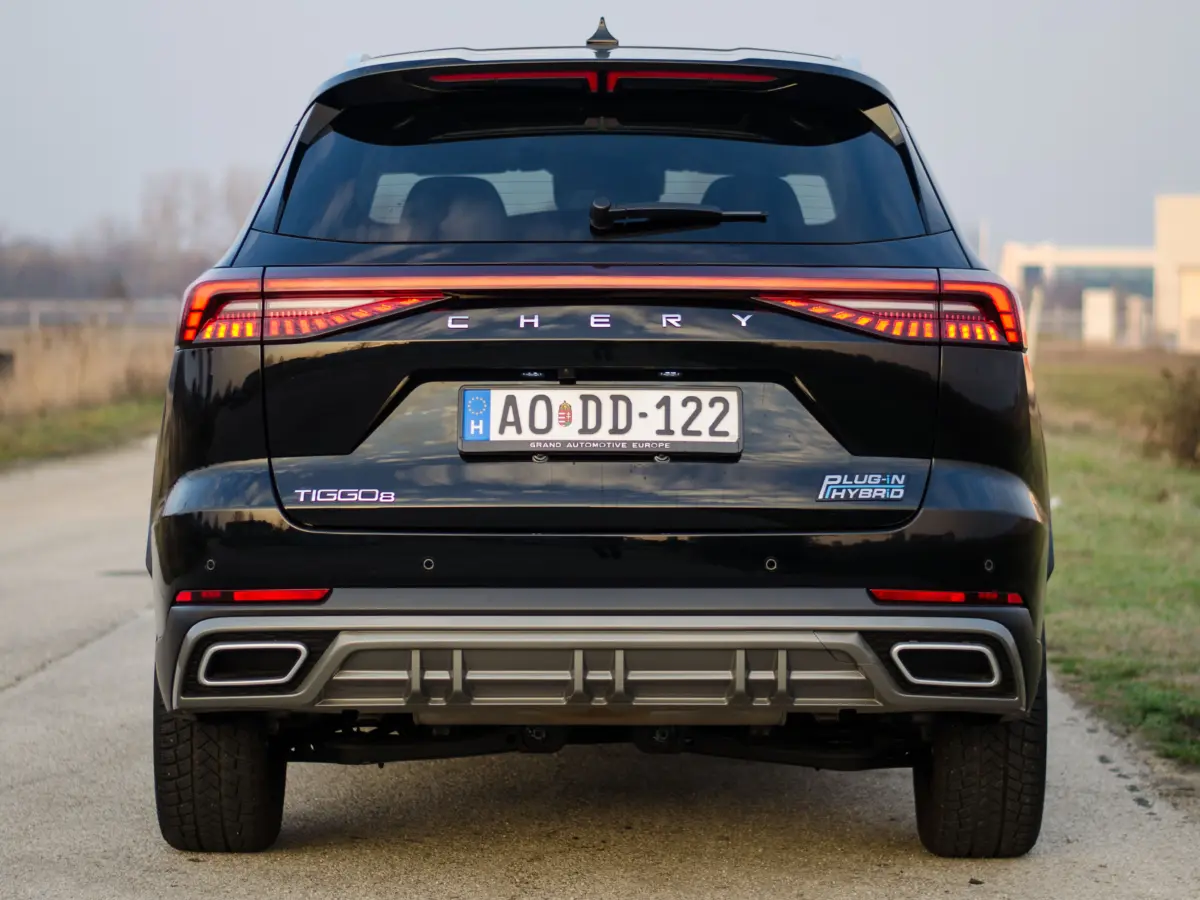 A vezetési élménybe azonban ismételten beleszól a spórolás. Szerencsére ebben az esetben a kormányzást, a rugózást, illetve a pedálérzeteket kiválóan eltalálta a gyártó.Tiggo 8 nem csak üresen, hanem 7 személlyel és csomagokkal megpakolva is jól mozog, vélhetően a több lengőkaros hátsó futóműnek köszönhetően. Az önmagában két tonnás karosszériától természetesen nem kell versenyautós kanyarsebességeket várni, a futómű kellemesre hangolt, de még éppen nem billegős, illetve az autó tömegét is jól leplezi az agilitása. A saját fejlesztésű CSH, avagy Chery Super Hybrid névre keresztelt konnektoros hibrid rendszer azonban nincs ilyen finomra hangolva. Jelentős a különbség az egyes hajtási módok között, tisztán érezni, hogy épp villanymotorral, benzinmotorral, vagy a kettővel együtt dolgozik, ha pedig egy gázadás, vagy a merülő akku miatt váltania kell, azt nyersen és érezhetően teszi, ráadásul hosszas gondolkozás és feltűnő késés után. Mindez megszokható, sőt, nagyjából ezer kilométer után teljesen kiszámíthatóvá válik, de akár manuálisan is kapcsolható a hajtás módja, így veszélyesnek, vagy különösebben kellemetlennek nem nevezném. Ám aki vezetett már drágább konnektoros hibrideket, az pontosan tudja: néhány száz órányi mérnöki munkát erre még ki kellett volna fizetnie a gyártónak, hogy tökéletes legyen.