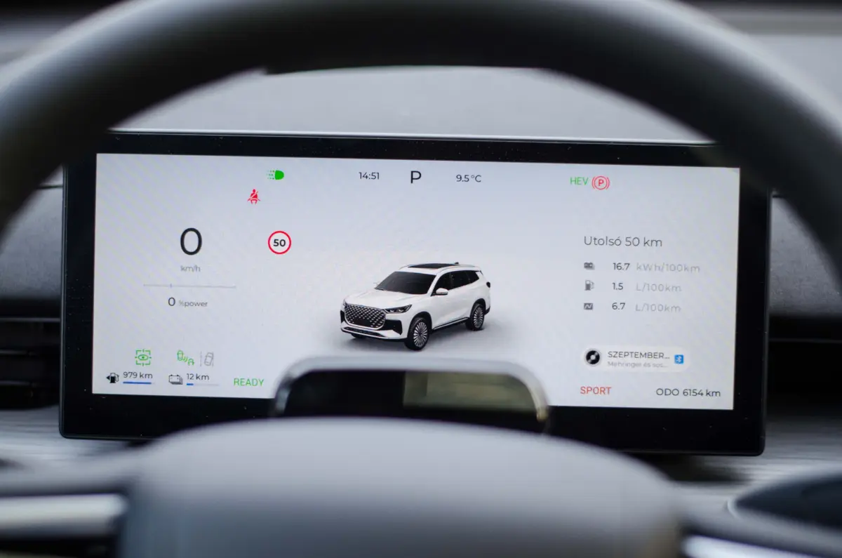 Ugyanez igaz a vezetéstámogató rendszerekre, amelyek lehetnének precízebbek, mindezt túlzott óvatossággal kompenzálják. Volt szerencsém bejárni az országot ezzel az autóval, közel 800 kilométert vezettem autópályán, és bizony többször is lassított a semmire, vagy a szélső sávban közlekedő kamionokra. Városi használat esetén a kipörgésgátló darabos, illetve az irányváltó vezérlőegysége is szeret néha rakoncátlankodni, főleg akkor, amikor sietősebben próbálsz ide-oda tolatgatni az autóval. Ezek alapján megeshet, hogy olcsóbb, vagy idősebb technikával dolgoztak a kínaiak, de az sem kizárt, hogy itt is csak további finomhangolásra és néhány szoftverfrissítésre lenne szükség. A frissítés a riasztóra is ráférne, mert többször is sikerült a semmiért felemelnie a hangját, főként csomagok be-és kipakolásakor, az autó szabályos nyitása után.