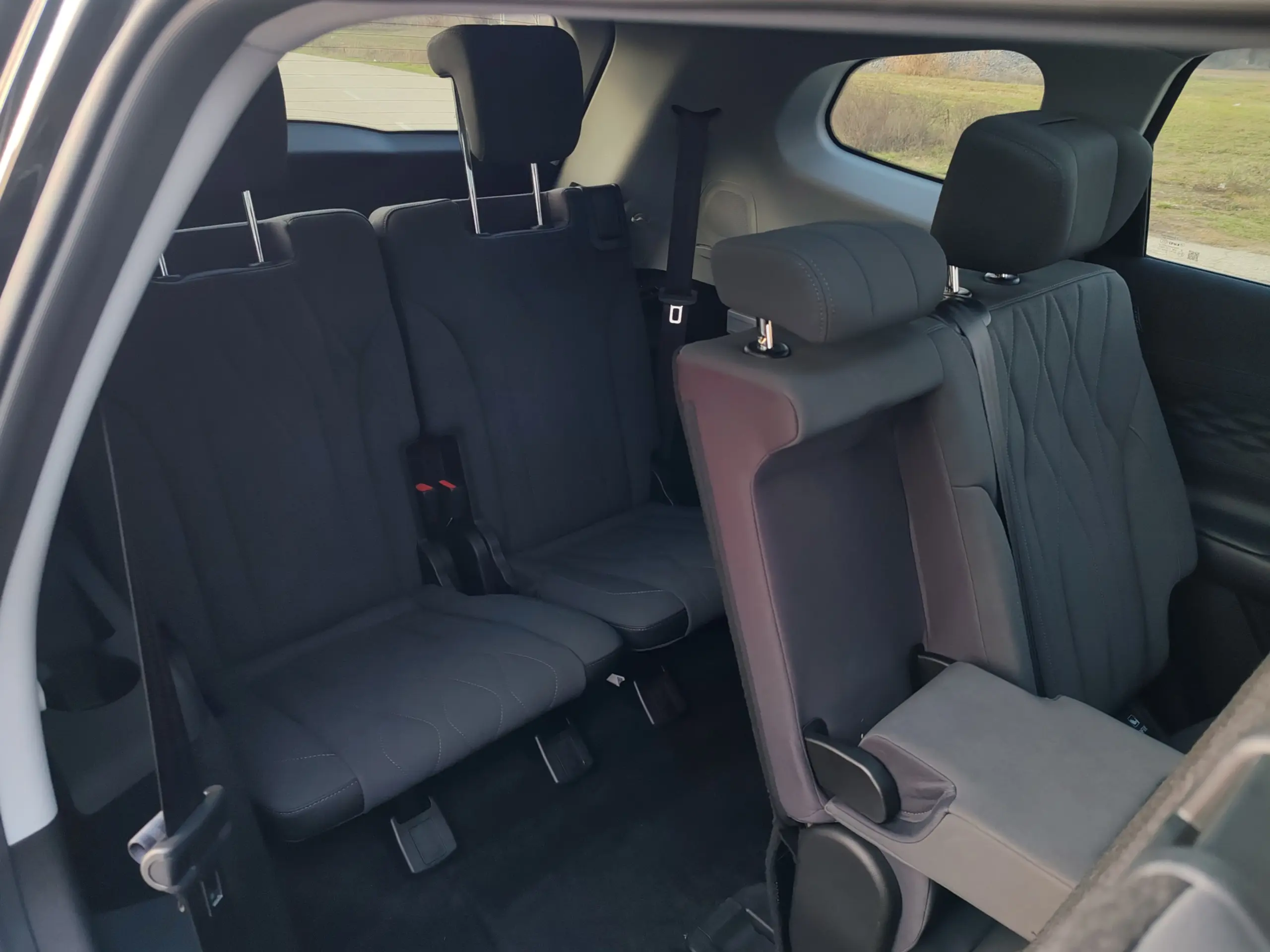 Ami a helykínálatot és a kényelmet illeti, az utastérben ezen nem spóroltak a kínaiak. Kényelmes a fej- és a lábtér is a középső sorban, az állítható háttámla mellett akad szellőző, ülésfűtés, illetve pohártartó is, a sínen előre és hátra mozgatható paddal a harmadik sornak is lehetséges kényelmes lábteret biztosítani. Leghátul a fejtér már kérdéses, ám nem kevesebb, mint a konkurensekben. A szükségülések tartása és anyaga is elmegy, pohártartók is jutottak a harmadik sorba, szóval ezen a téren minden rendben. A csomagtartóból azonban hiányzik az a néhány centi a két szükségülés mögül, amivel a konkurensek hosszabbak a Tiggo 8-nál. Illetve ami még fontosabb: a kalaptartót, a töltőkábelt és az egyéb kiegészítőket sincs hová tenni ebben a konfigurációban, így azok is innen foglalják a minimális helyet.
