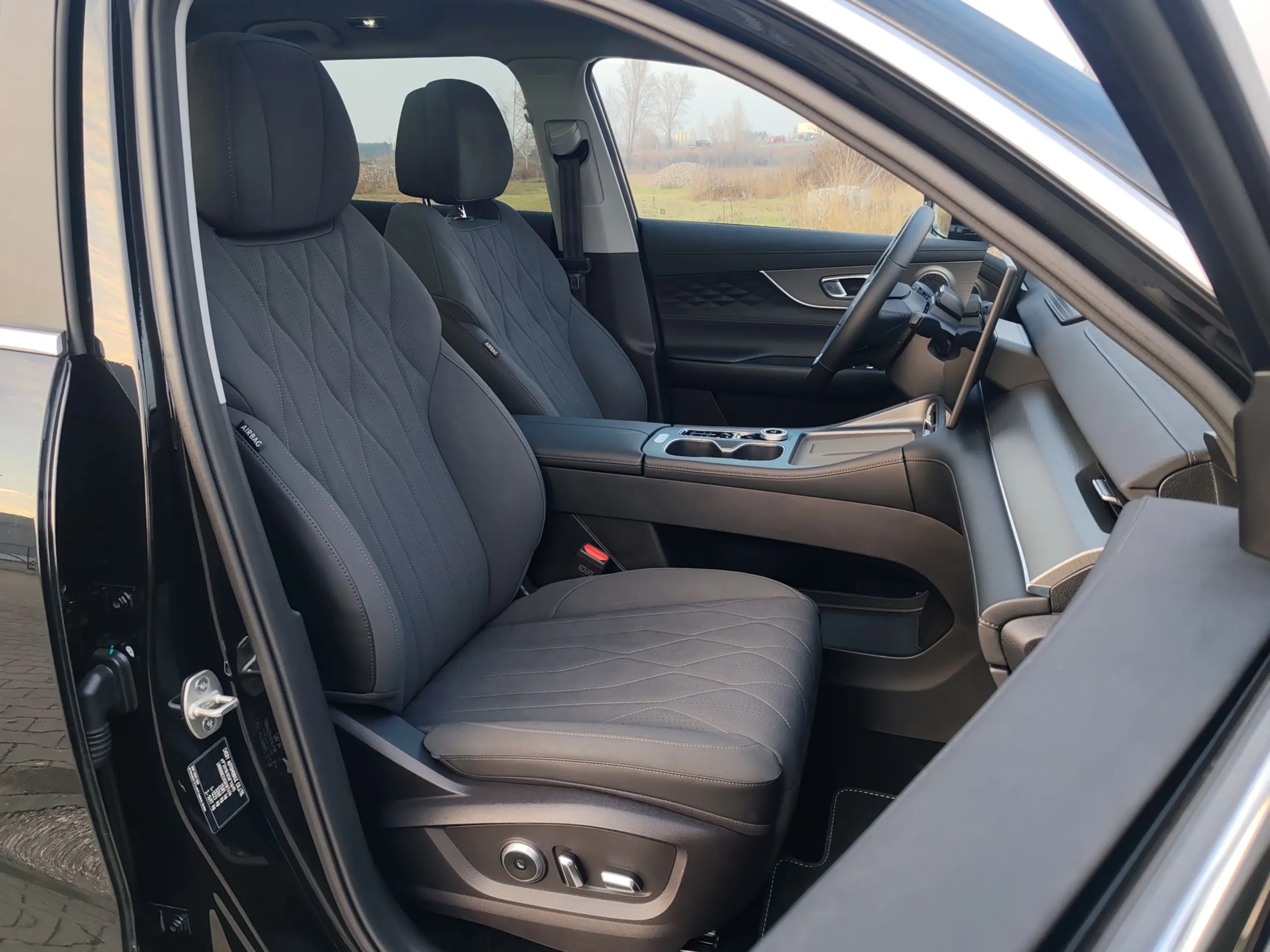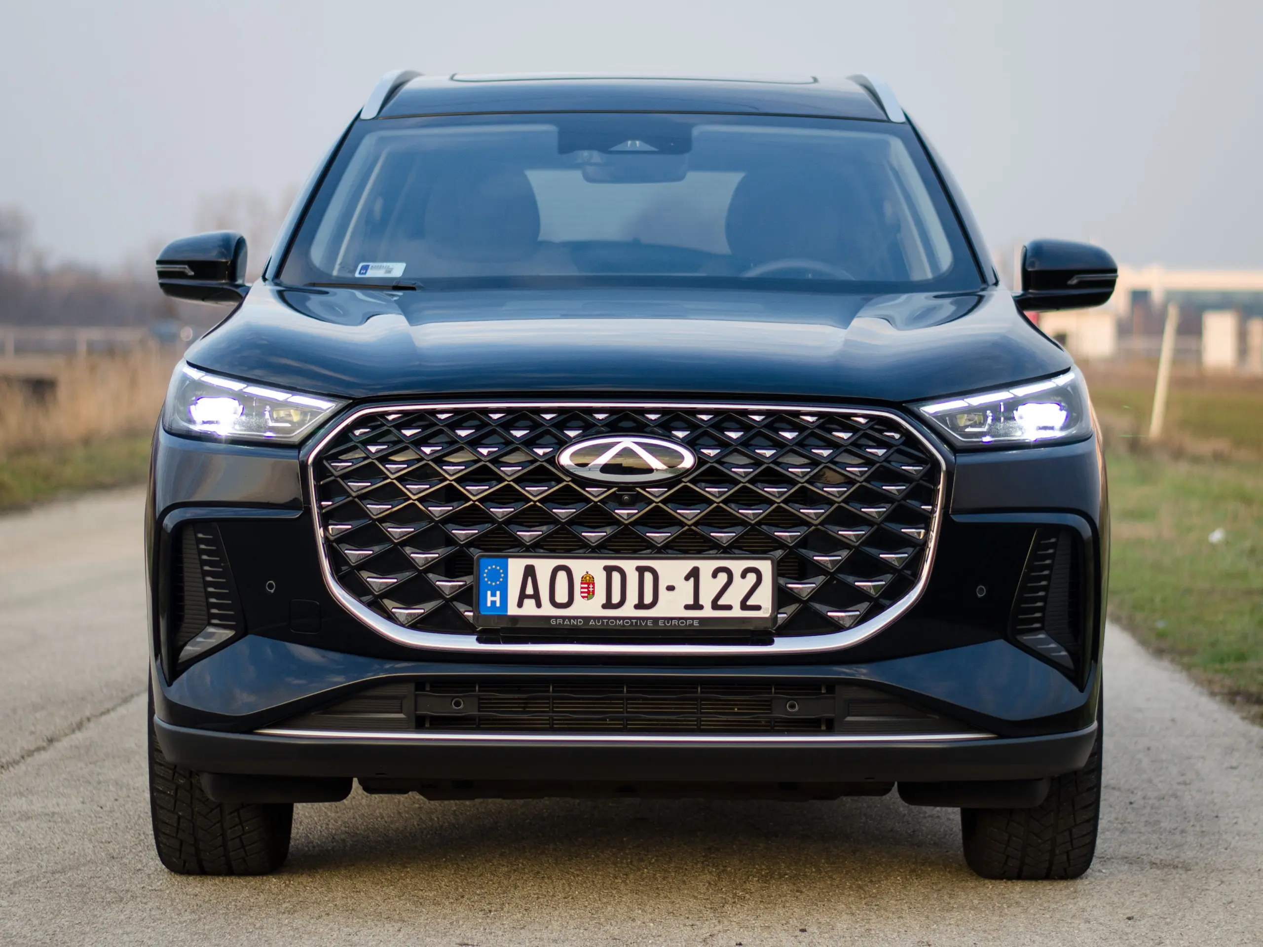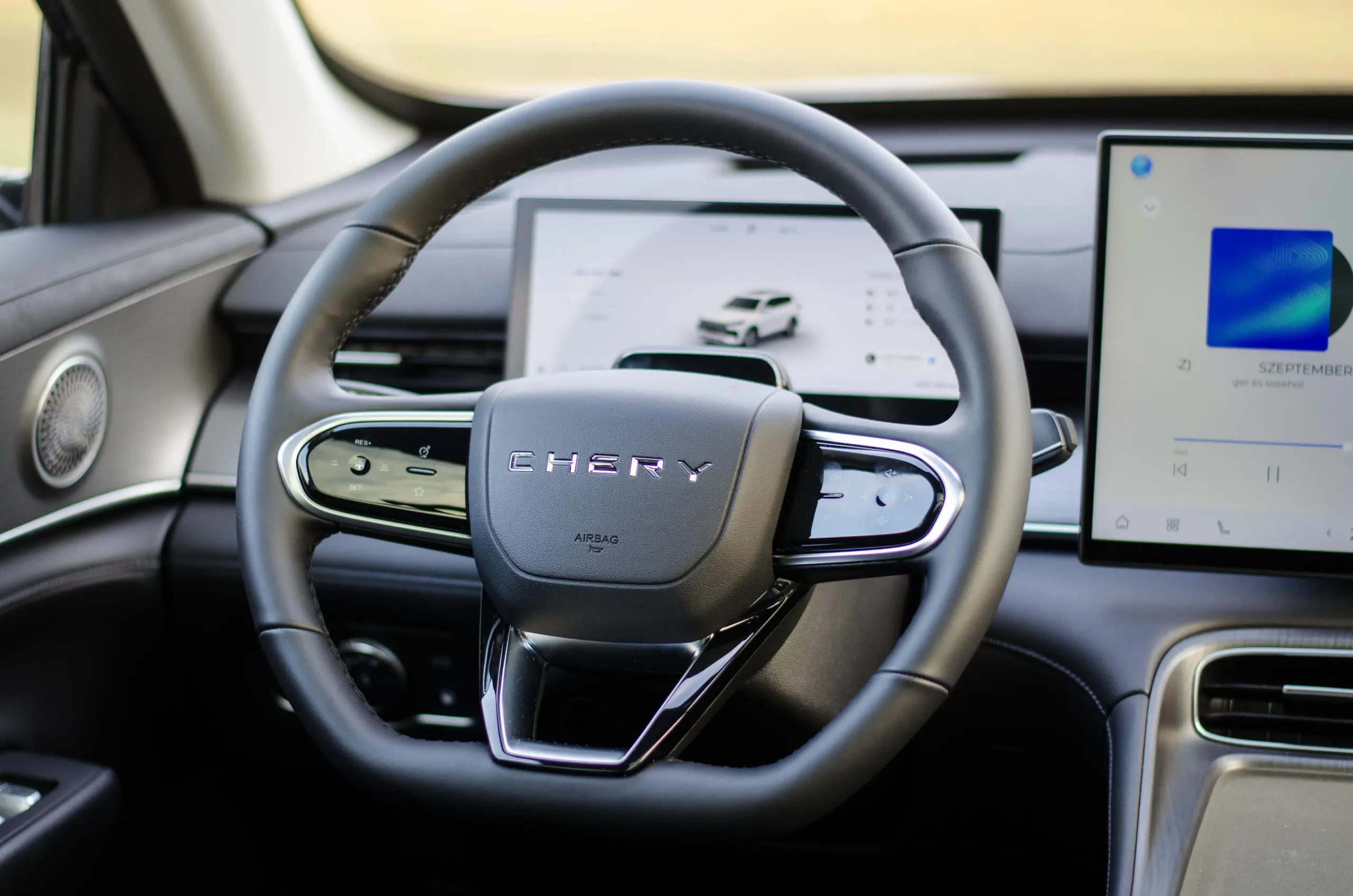 Az utastérben sokkal érdekesebb a helyzet, hiszen ott a minőségérzetet nagyobb részét nem a látvány, hanem többek között a tapintás és a tech-színvonal adja, ezt pedig jóval költségesebb megfelelő szintre hozni. Az anyagminőség terén azonban felvette a kesztyűt a Chery, és a legtöbb felületet valóban bevonták kellemes tapintású matériákkal, illetve a hangulatvilágítás mennyiségével is megpróbálták emelni a színvonalat. A kormánykerék formája és bőrözése is kimondottan kellemes, az ülések tartása és anyagminősége is magasabbra lő az elvártnál. A kínai prémium szegmens egyik lenyomata, hogy az anyósülés hátulról is állítható, ezzel akár sofőrös autónak is alkalmas lehet. Bár szinte mindenhol érezni, hogy van ennél feljebb is, a zavaróan olcsó részleteket konkrétan keresni kell, ami ennyiért ismételten egy kiemelkedő ajánlat a piacon.