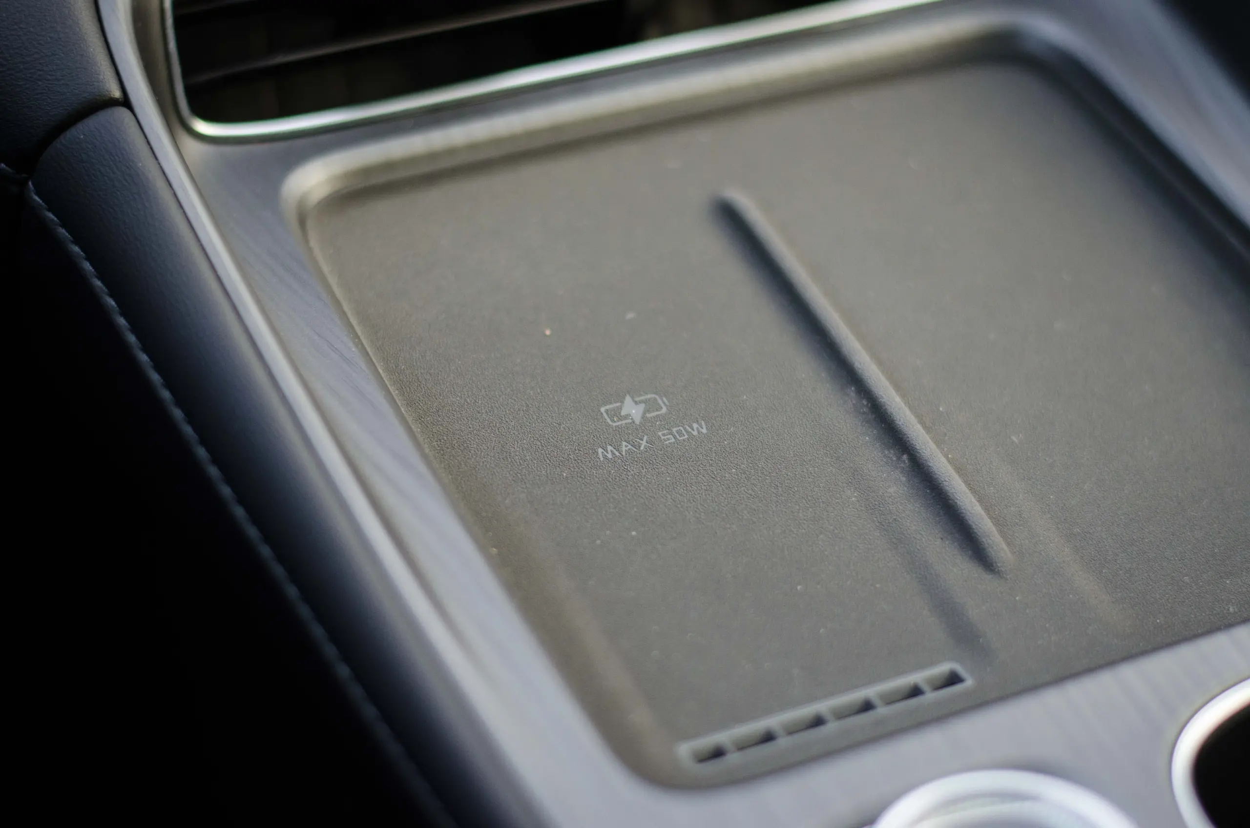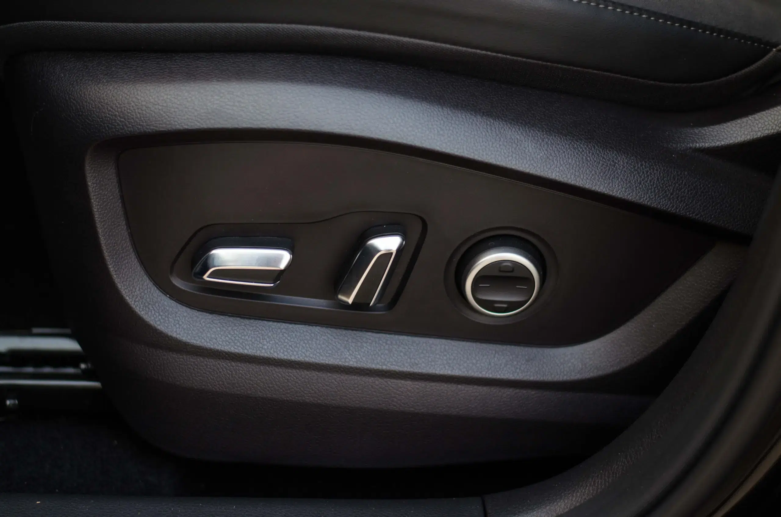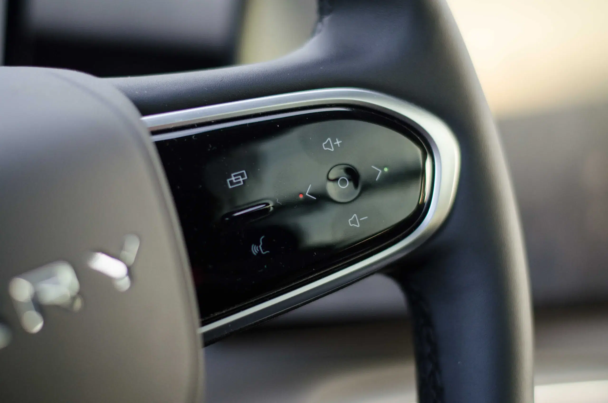 Bár a klímát, illetve rengeteg kényelmi funkciót csak a képernyőről lehet vezérelni, gombok is jutottak bőséggel, kínai mércével mérve meglepően sok is. A plafonon a tetőablak vezérlője, a középkonzolon pedig a vezetési módok, illetve a hajtáslánc üzemmódválasztója kapott fizikai kezelőszerveket néhány gyorsgombbal, a kormánytól balra pedig valódi lámpakapcsolóval kedveskedtek, ami már a jól bejáratott márkáknál sem egyértelmű manapság. Persze, ezek a gombok és tekerők is érezhetően csak a számítógépnek küldenek jeleket, a multifunkciós kormány olcsóbb megoldása miatt pedig a szokásosnál jóval könnyebb mellényomni rajta. Így a kapcsolóknak nincs minőségi érzete, de még ez is ezerszer jobb, mint a tapipadok, vagy a menüben turkálás.
