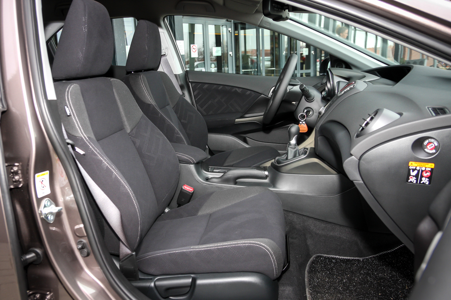 Ahogy az aktuális Civic-nemzedék most már két-, sőt, a szedánnal együtt háromtagú kínálatának külsejébe, úgy a belső kialakításba is bele lehet kötni, mondván kissé kaotikus, de az ellentábornak is igaza lehet, amikor azt válaszolja, hogy legalább nem unalmas. A minőségérzet rendben, az üléspozíció trendin magas, a kiváló váltó karja kiválóan kézre esik. Pakolórekesz dögivel, a húsos, „fehér varrással szebbé tett kormányra jó rámarkolni. A fehér varrás az üléseken és a térdtámaszon is visszaköszönhet. A hifi és a volán gombjainak környéke fényes fekete, a levegőrostélyok kerete krómozott műanyag